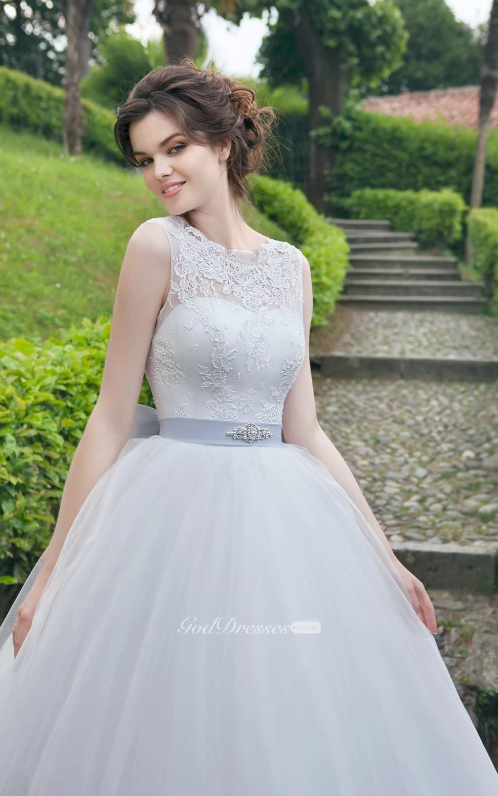 A-Line Floor-Length Jewel-Neck Sleeveless Zipper Organza Dress With Sash And Beading