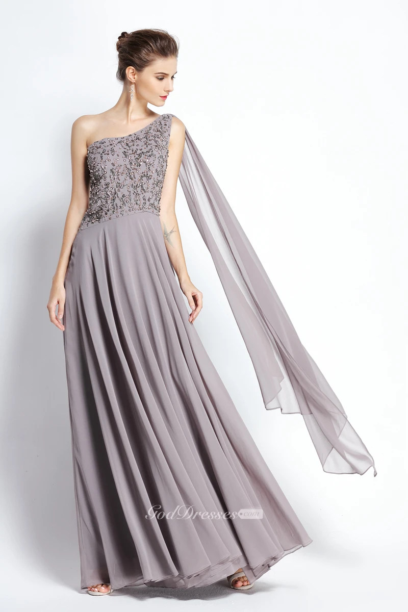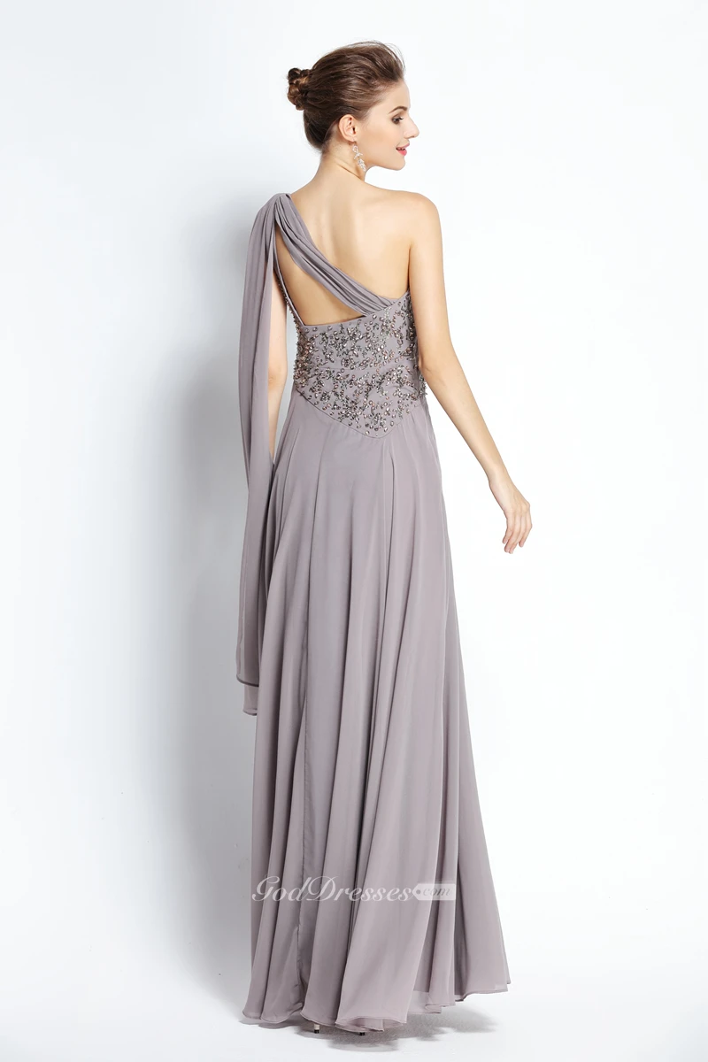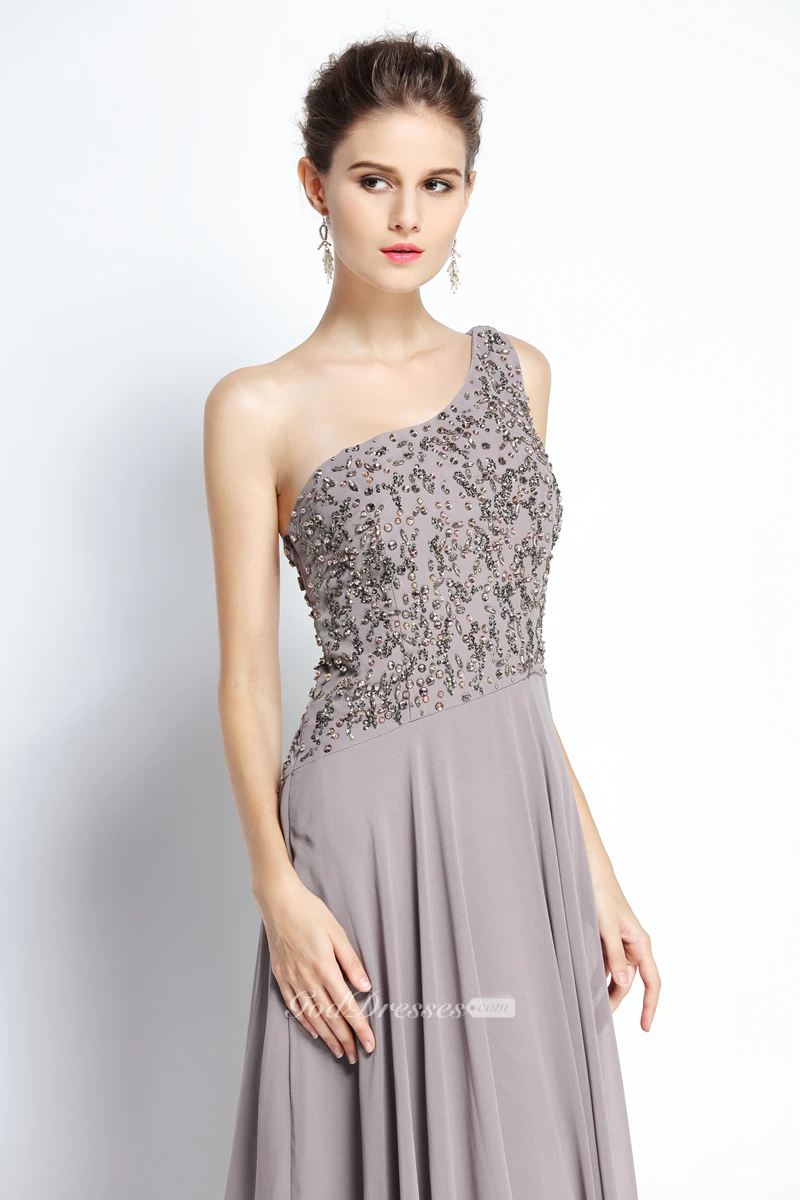 A-Line Floor-length One-shoulder Chiffon Sleeveless Prom Dress with Beading and Draping