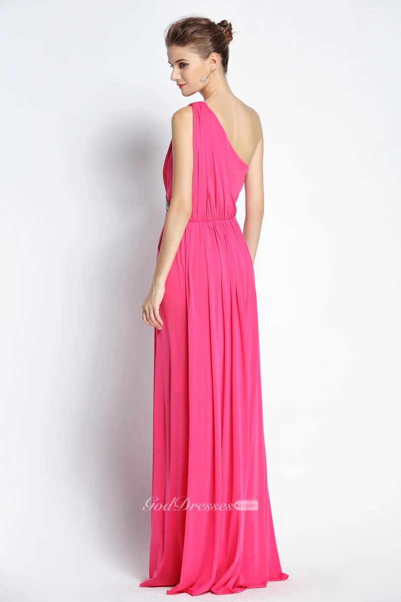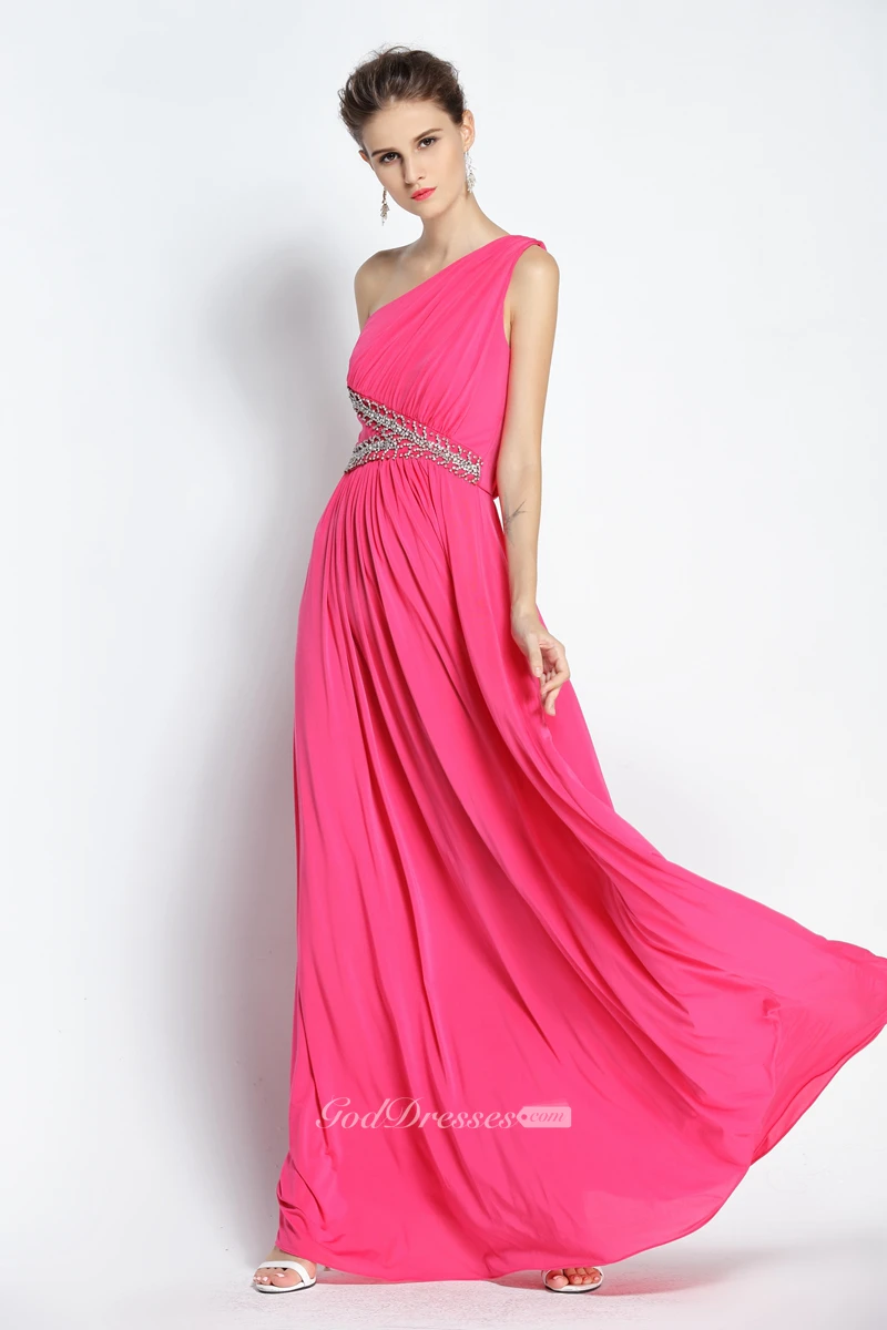 A-Line Floor-length One-shoulder Chiffon Sleeveless Prom Dress with Beading and Ruching