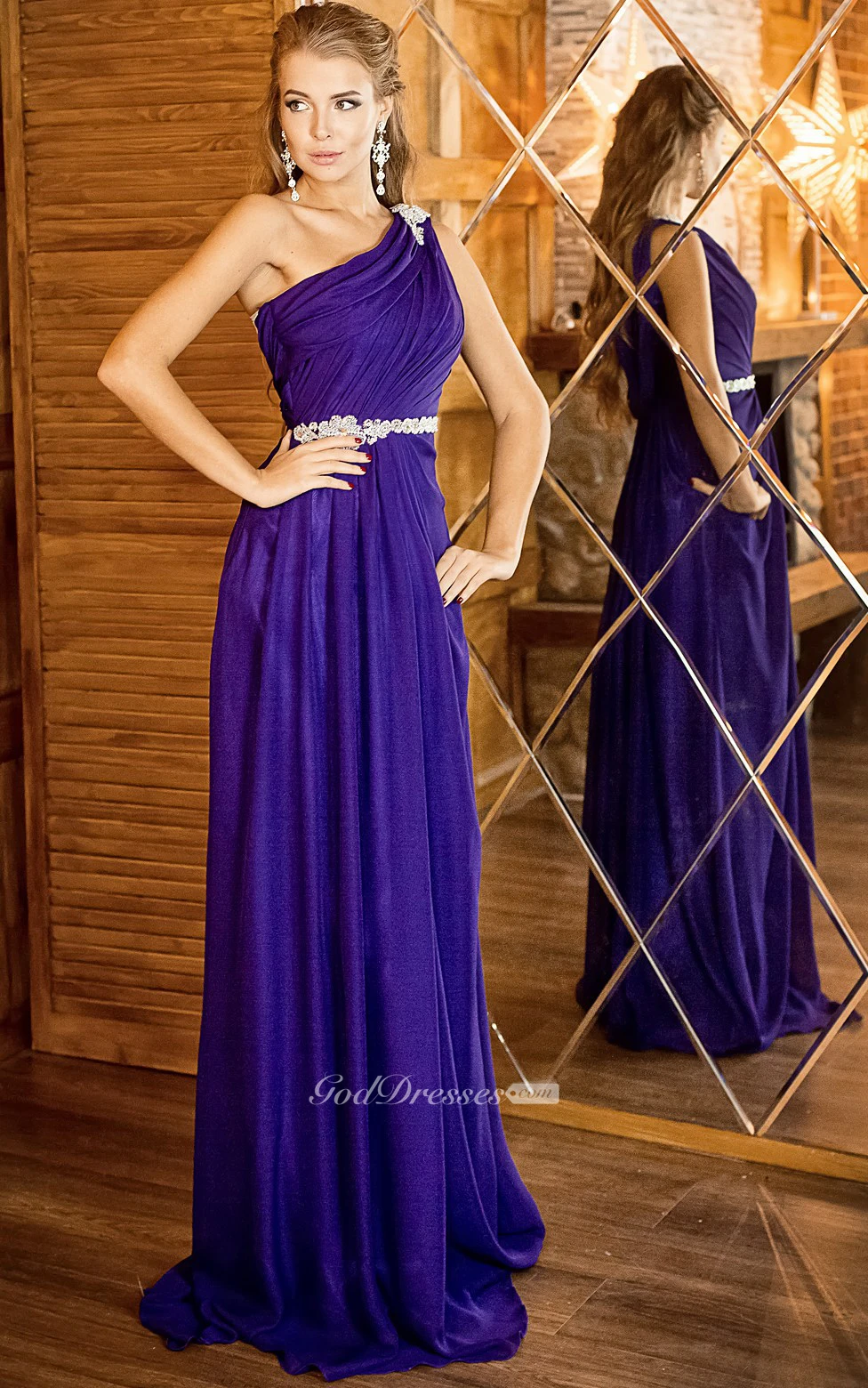 A-Line Floor-Length One-Shoulder Sleeveless Chiffon Appliques Beading Zipper Dress