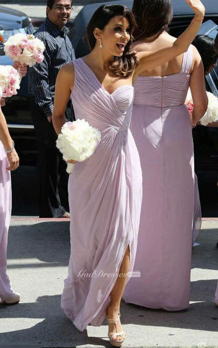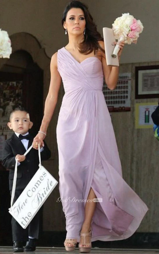 A-line Floor-length One-shoulder Sweetheart Sleeveless Pleats Chiffon Dress