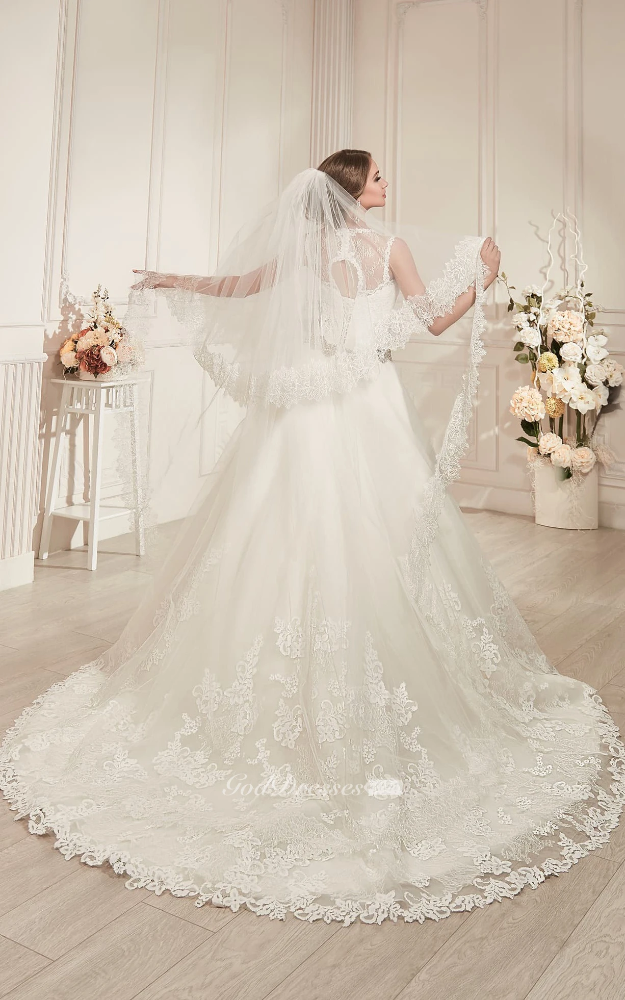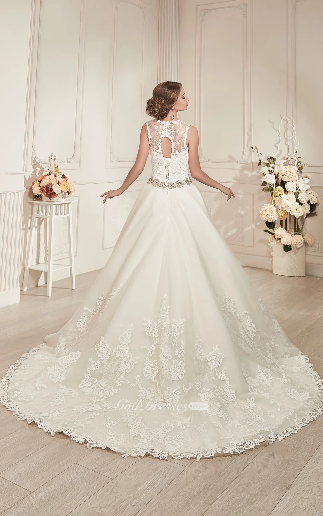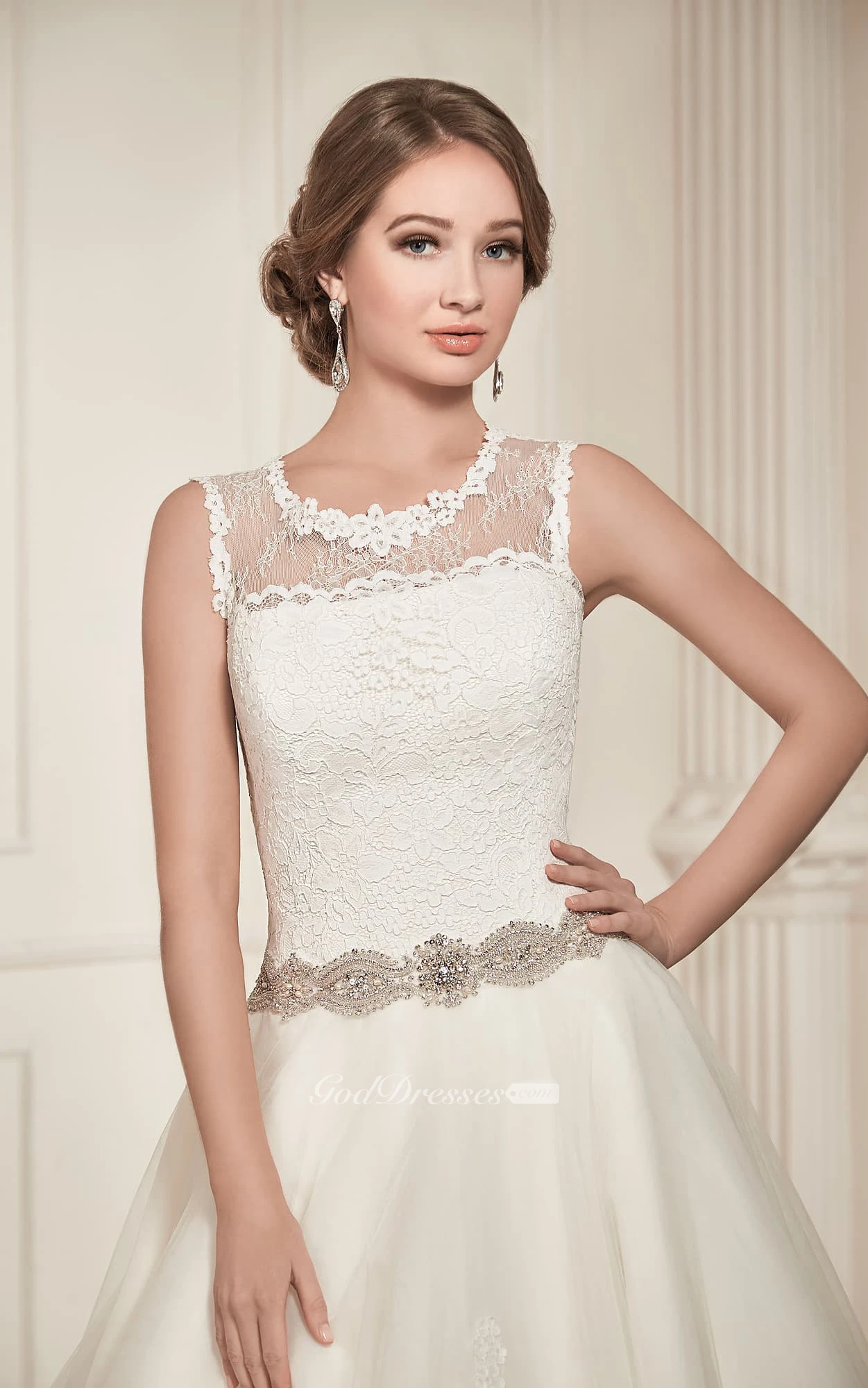 A-Line Floor-Length Scoop-Neck Sleeveless Lace-Up Lace Dress With Beading And Appliques
