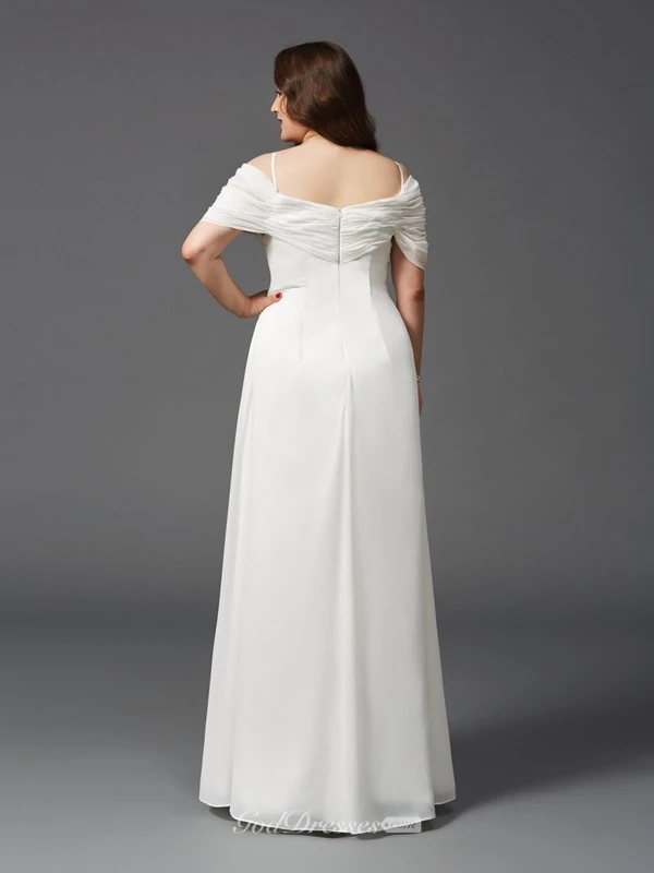 A-line Floor-length Spaghetti Empire Chiffon Ruching Beading Zipper Dress