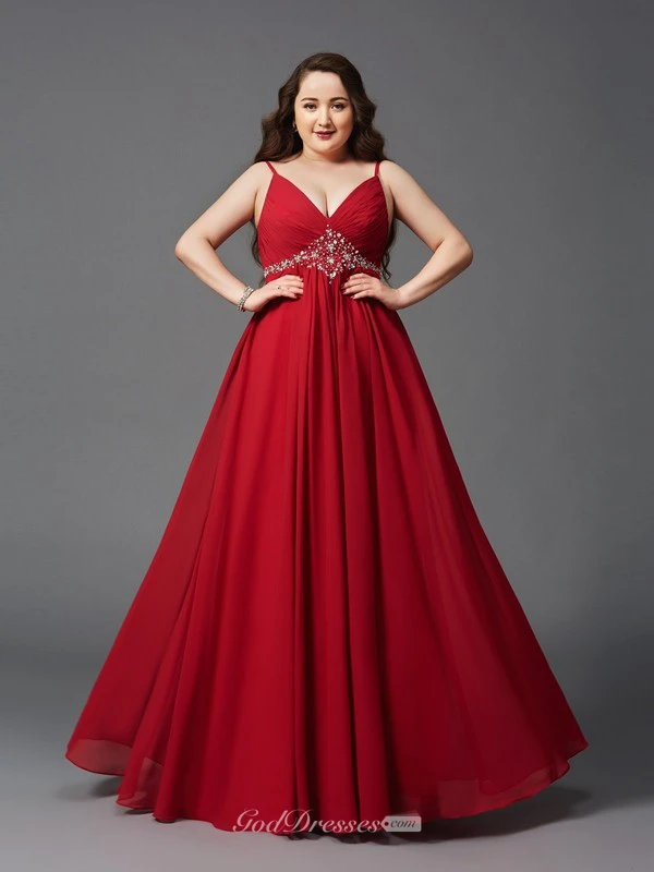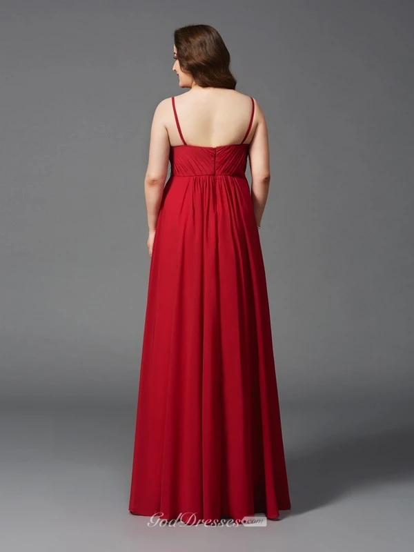 A-line Floor-length Spaghetti Sleeveless Chiffon Ruching Waist Jewellery Zipper Dress