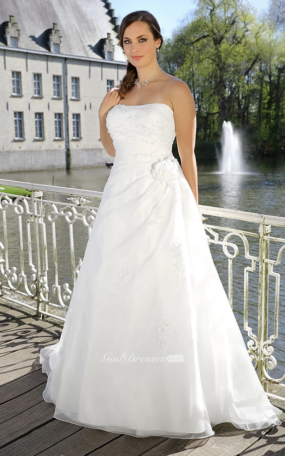 A-Line Floor-Length Strapless Long Sleeve Satin Cape Draping Flower Cape Dress
