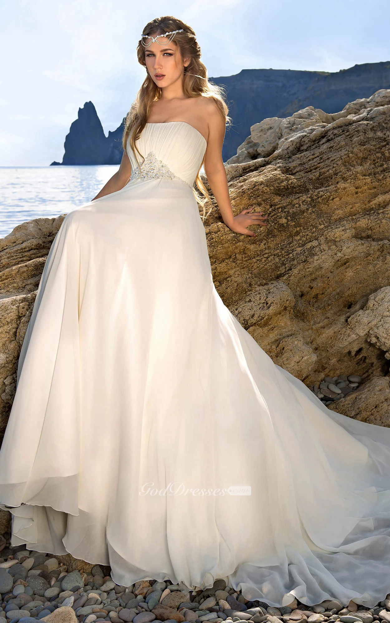 A-Line Floor-Length Strapless Sleeveless Backless Chiffon Dress With Waist Jewellery And Ruching