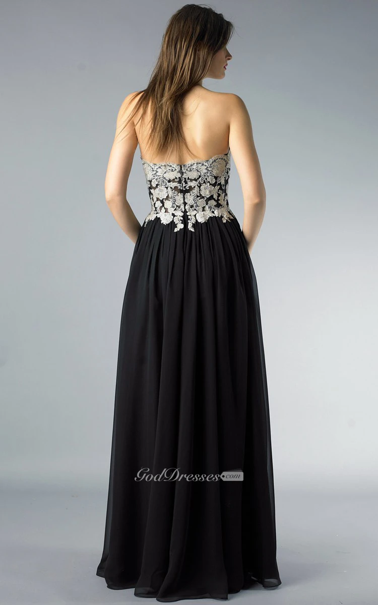 A-line Floor-length Strapless Sleeveless Chiffon Backless Dress