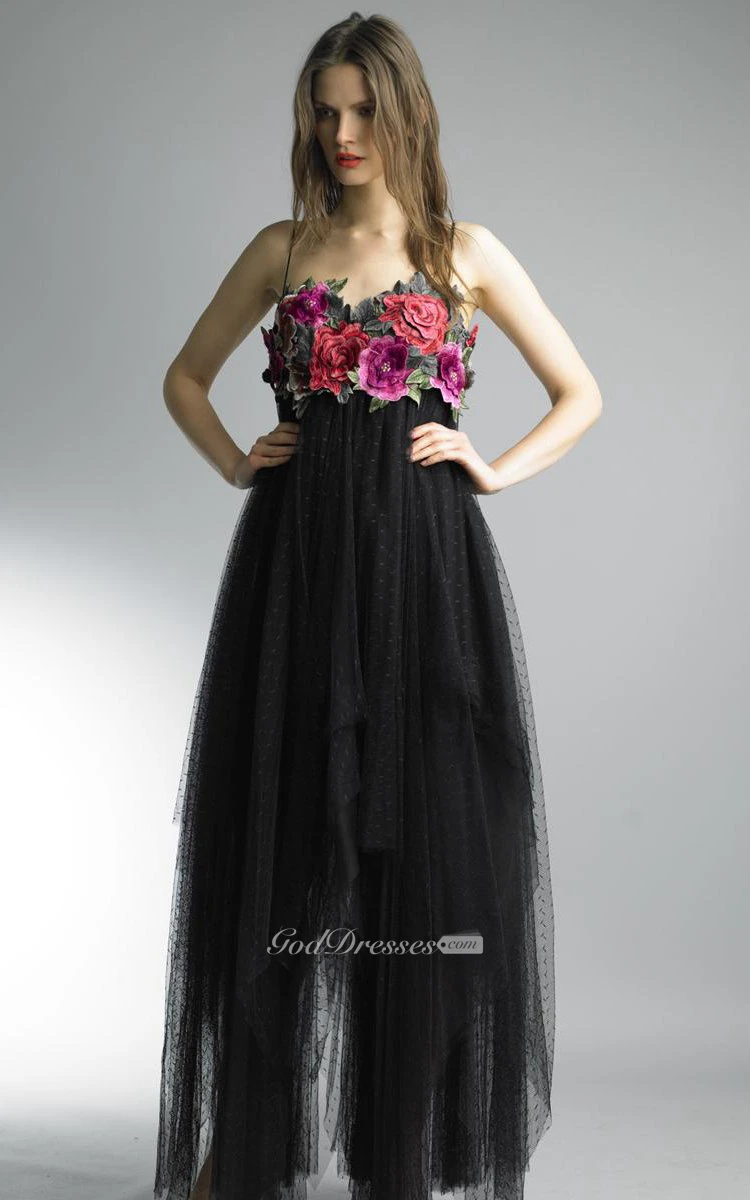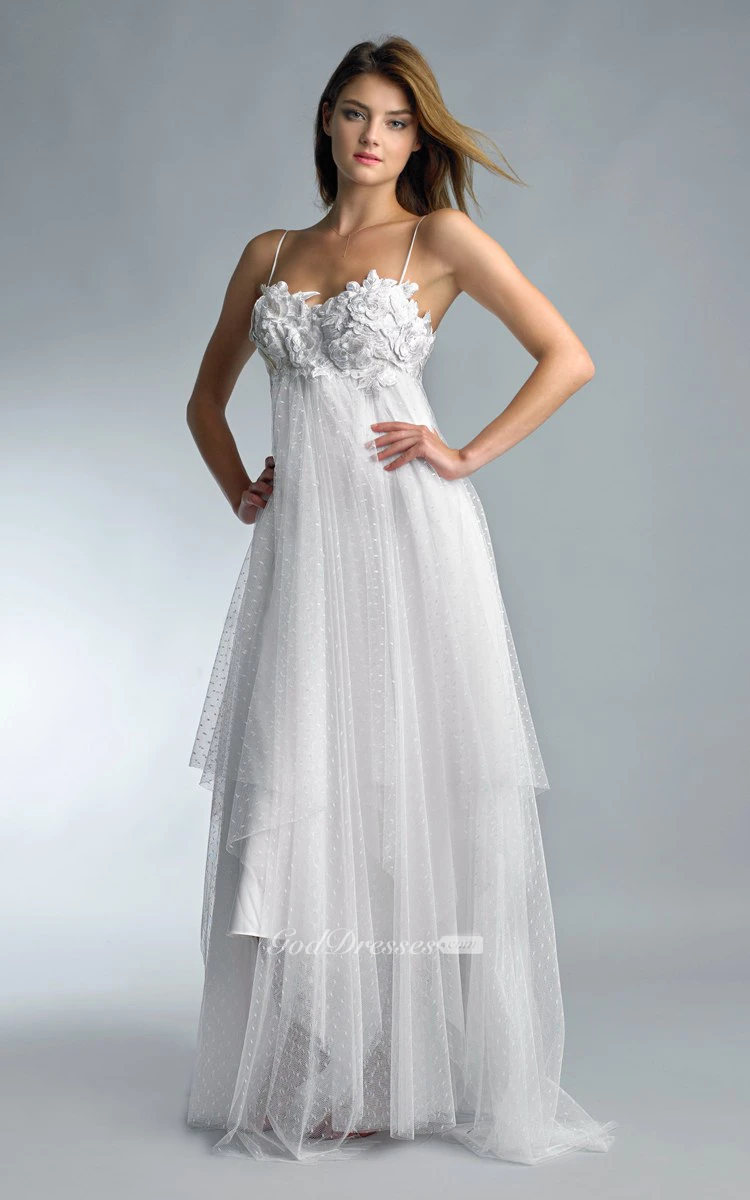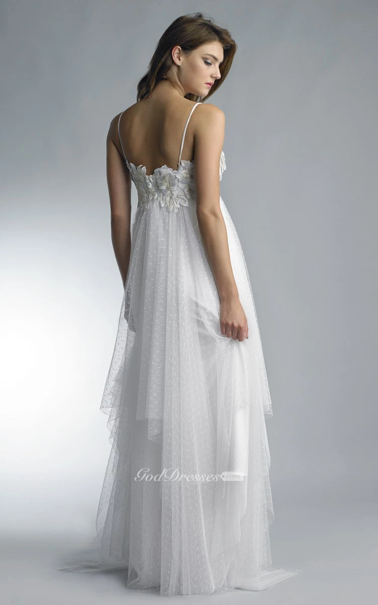 A-line Floor-length Strapless Spaghetti-strap Tulle Zipper Dress