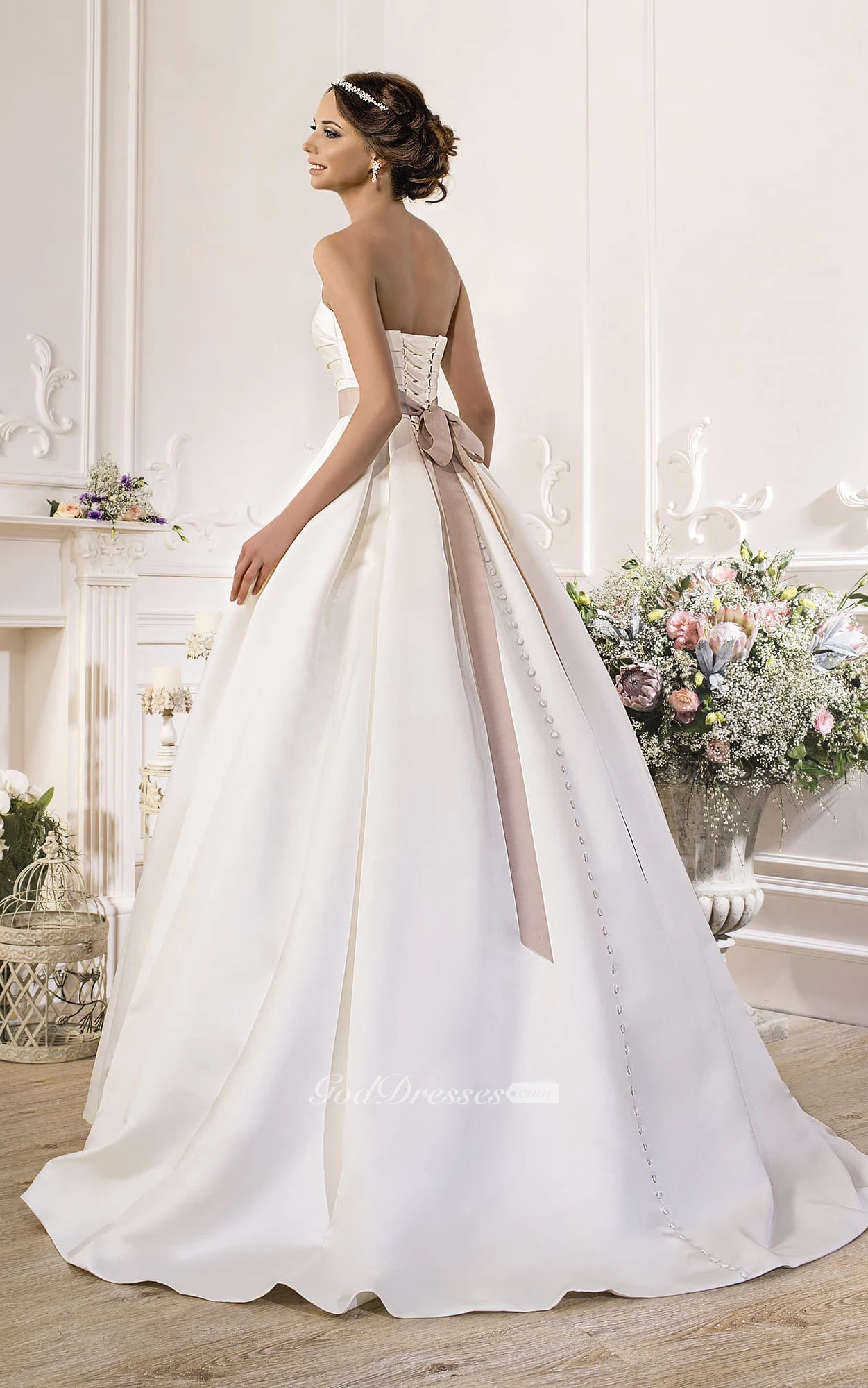 A-Line Floor-Length Straps Sleeveless Corset-Back Satin Dress With Bow