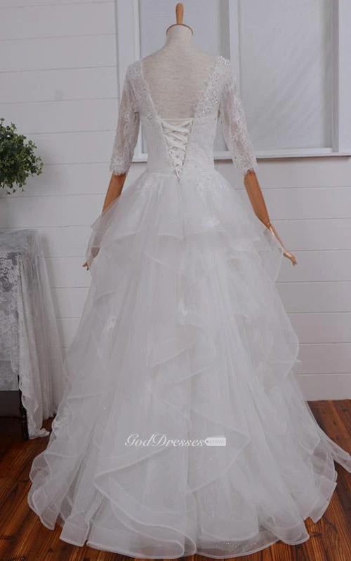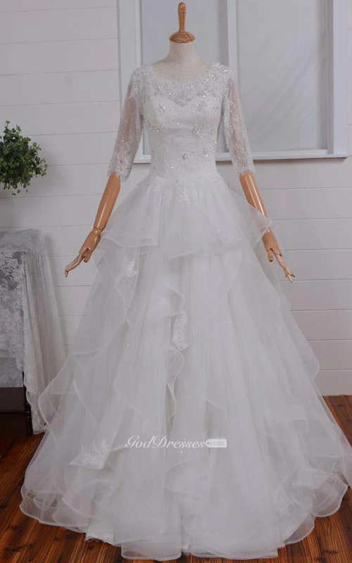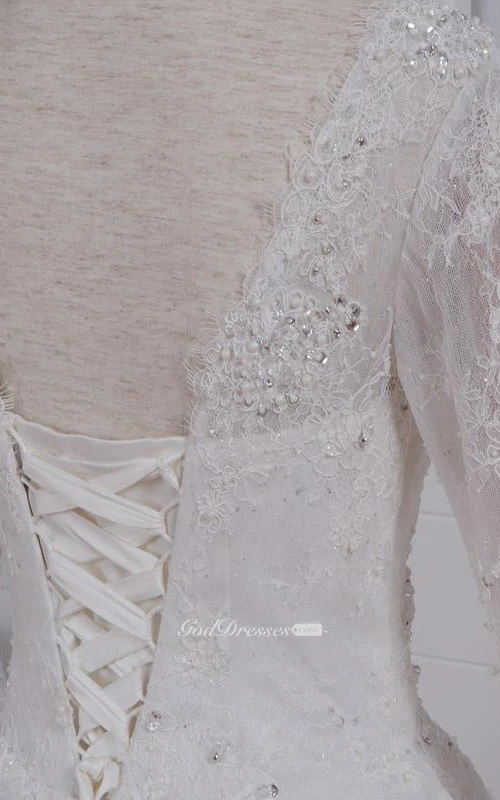 A-Line Floor-Length Straps Sweetheart Long Sleeve Illusion Illusion Zipper Illusion Straps Tulle Lace Organza Dress