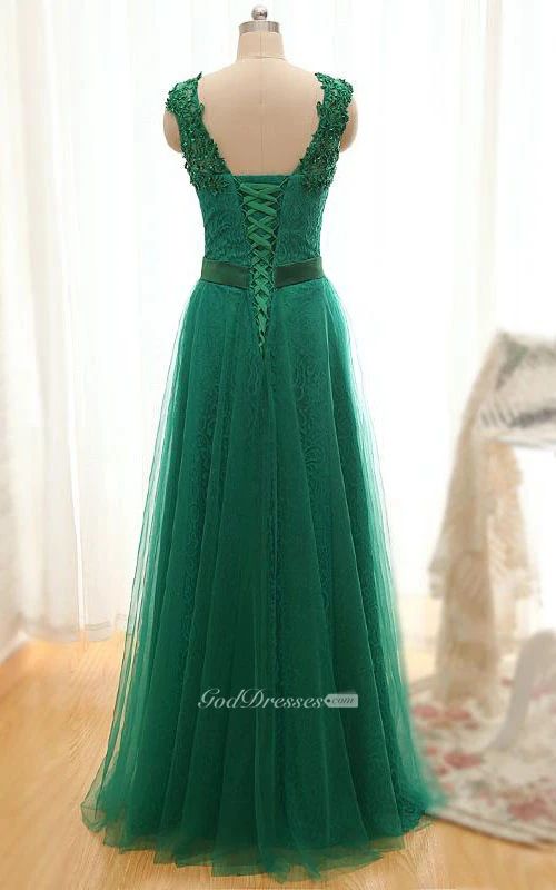 A-line Floor-length Straps V-neck Sleeveless Tulle Dress