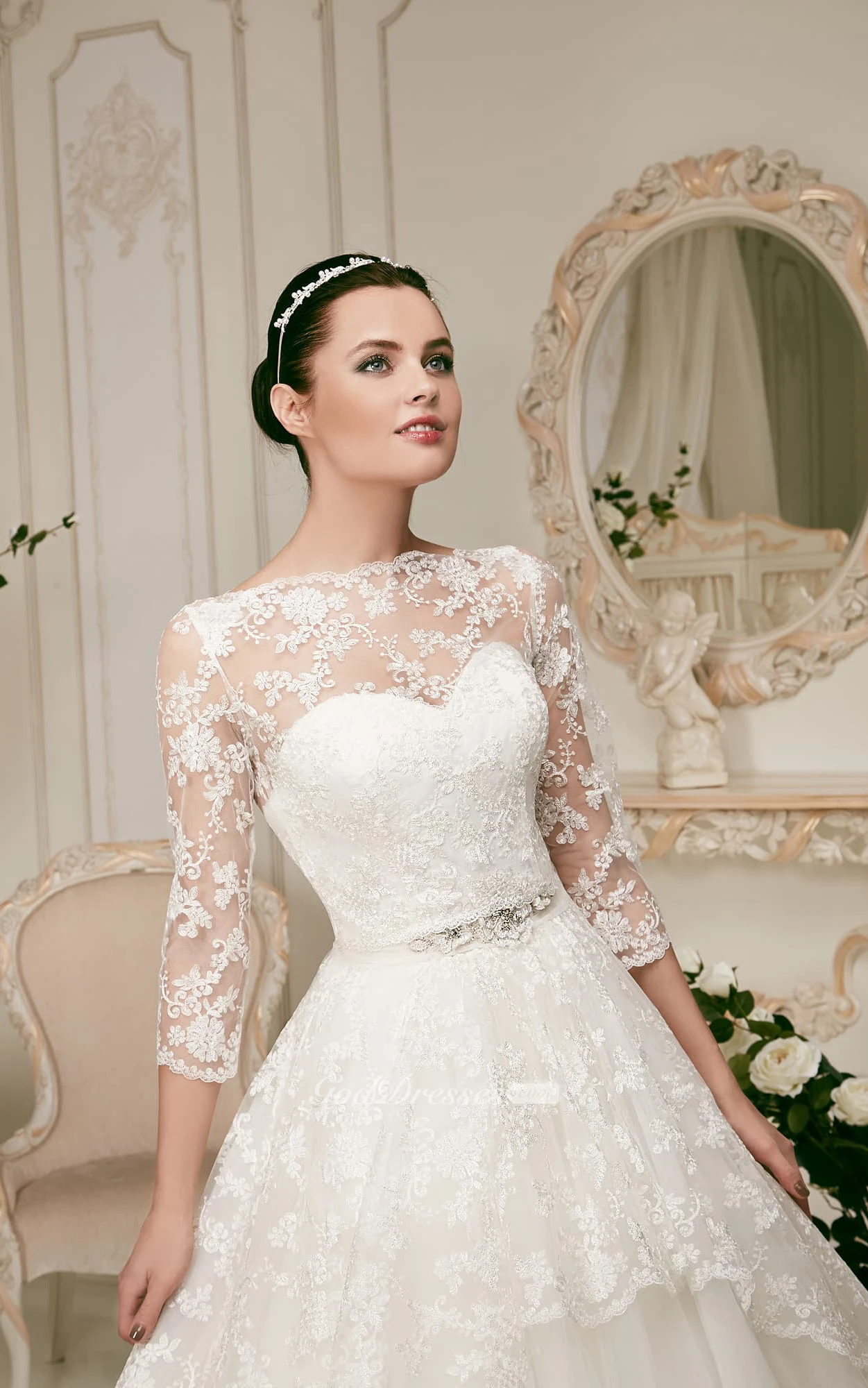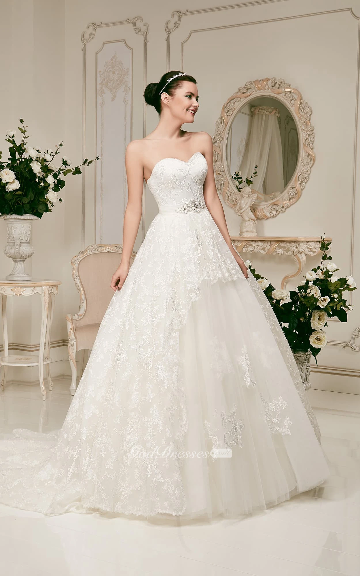 A-line Floor-length Sweetheart Crystal Decorated Lace Dress