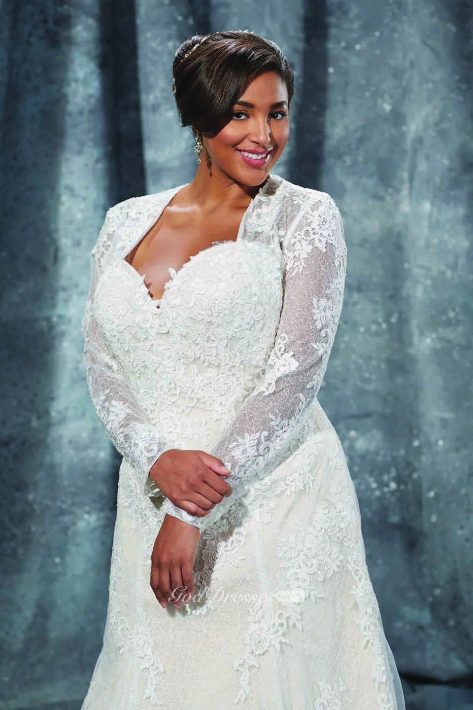 A-Line Floor-Length Sweetheart Long Sleeve Lace Sweep Train Lace-Up Back Appliques Dress
