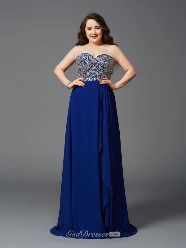 A-line Floor-length Sweetheart Sleeveless Chiffon Beading Draping Backless Dress