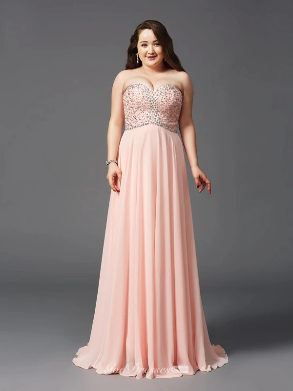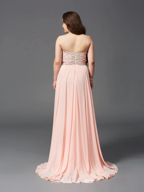 A-line Floor-length Sweetheart Sleeveless Chiffon Beading Pleats Backless Dress