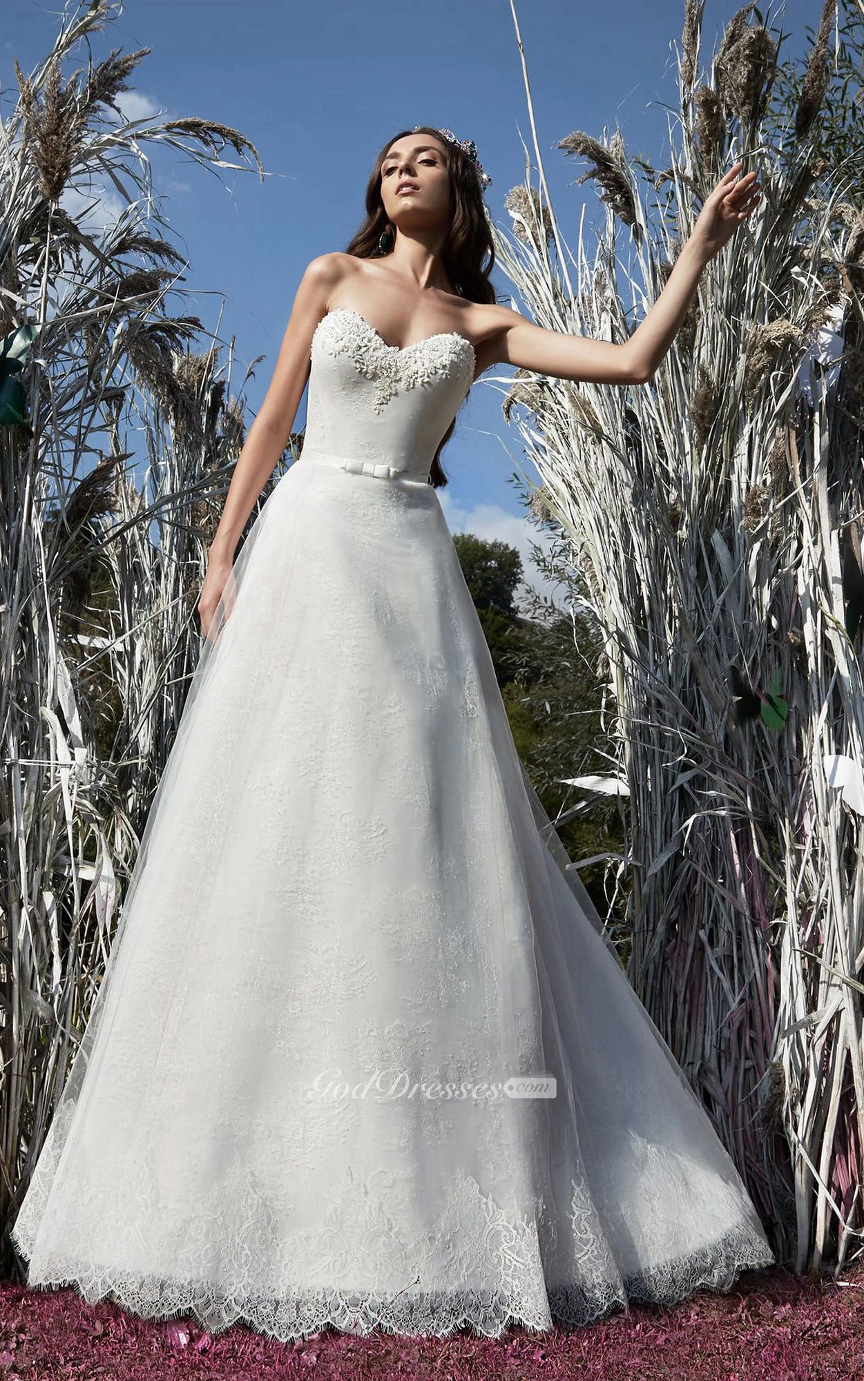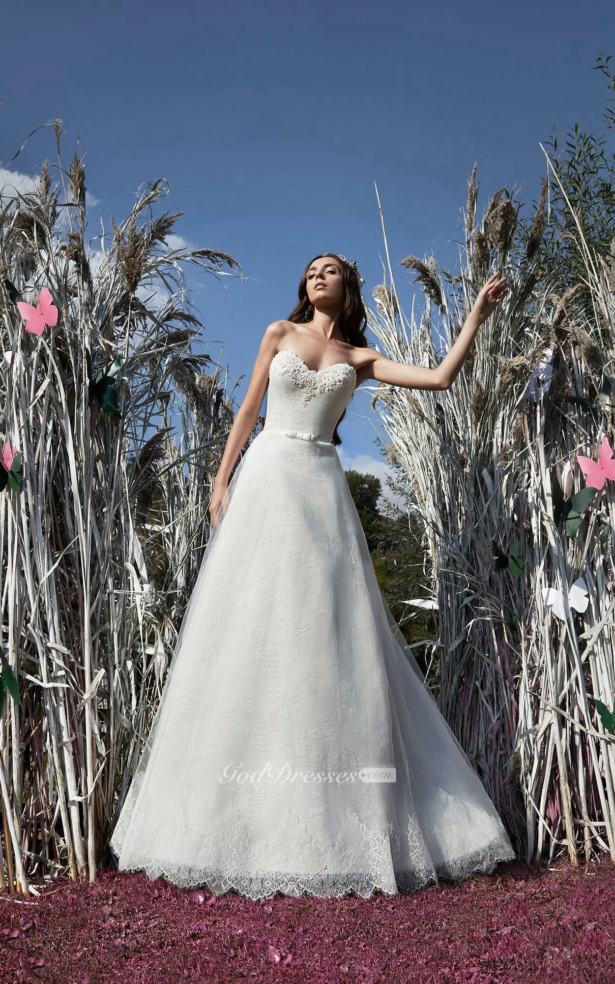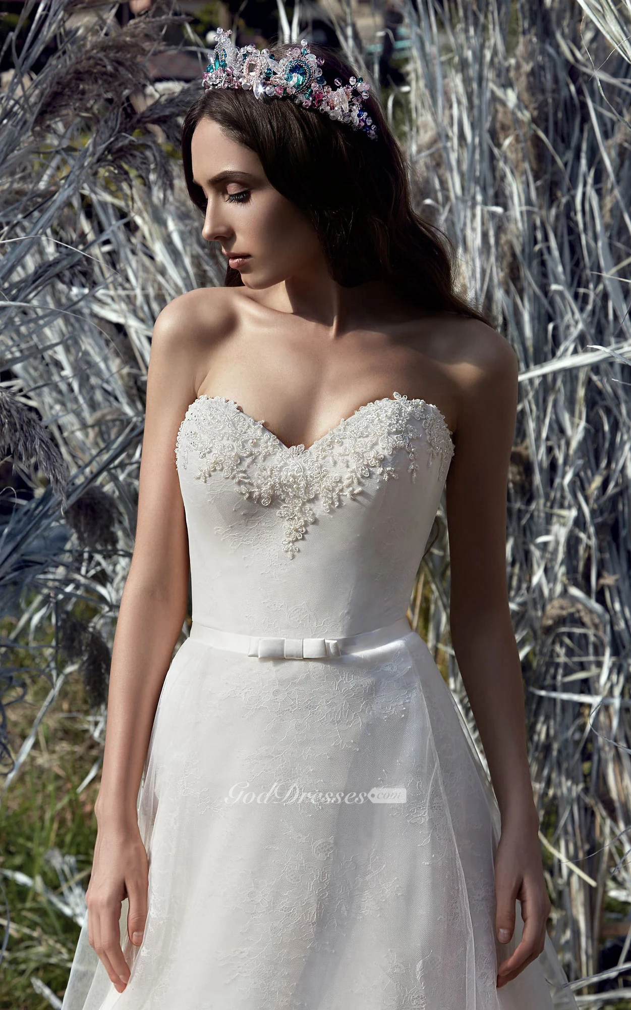 A-Line Floor-Length Sweetheart Sleeveless Corset-Back Lace Dress With Appliques And Sash