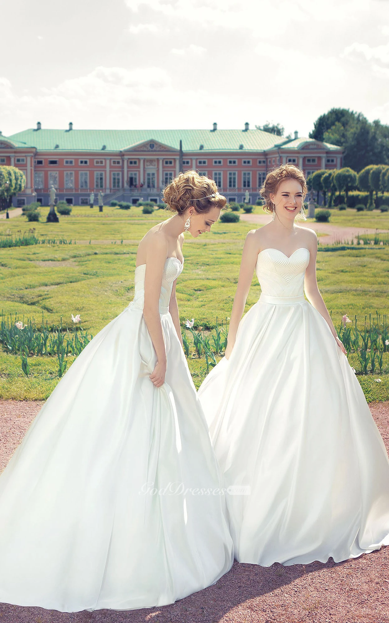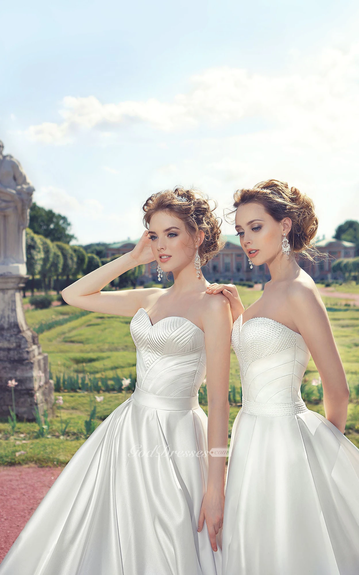 A-Line Floor-Length Sweetheart Sleeveless Corset-Back Satin Dress With Beading