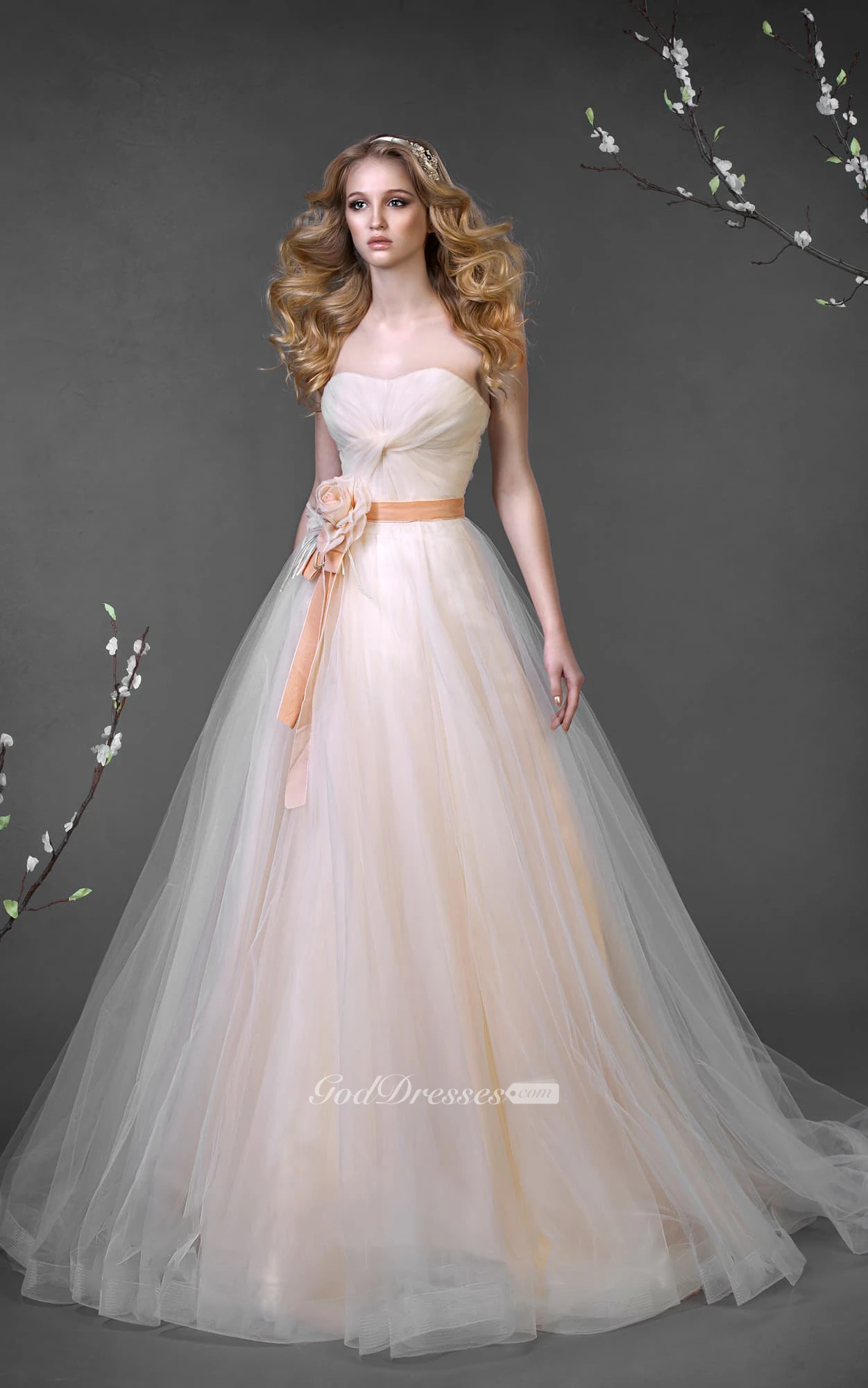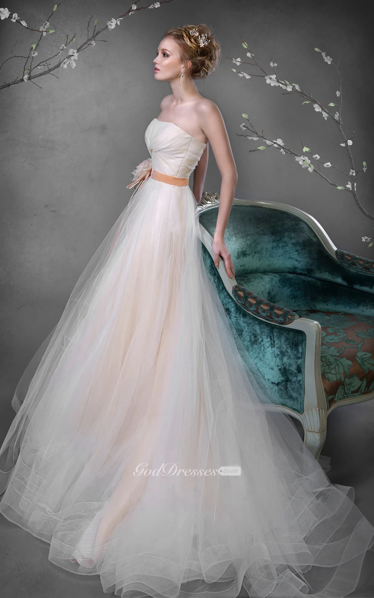 A-Line Floor-Length Sweetheart Sleeveless Corset-Back Tulle Dress With Flower And Ruching
