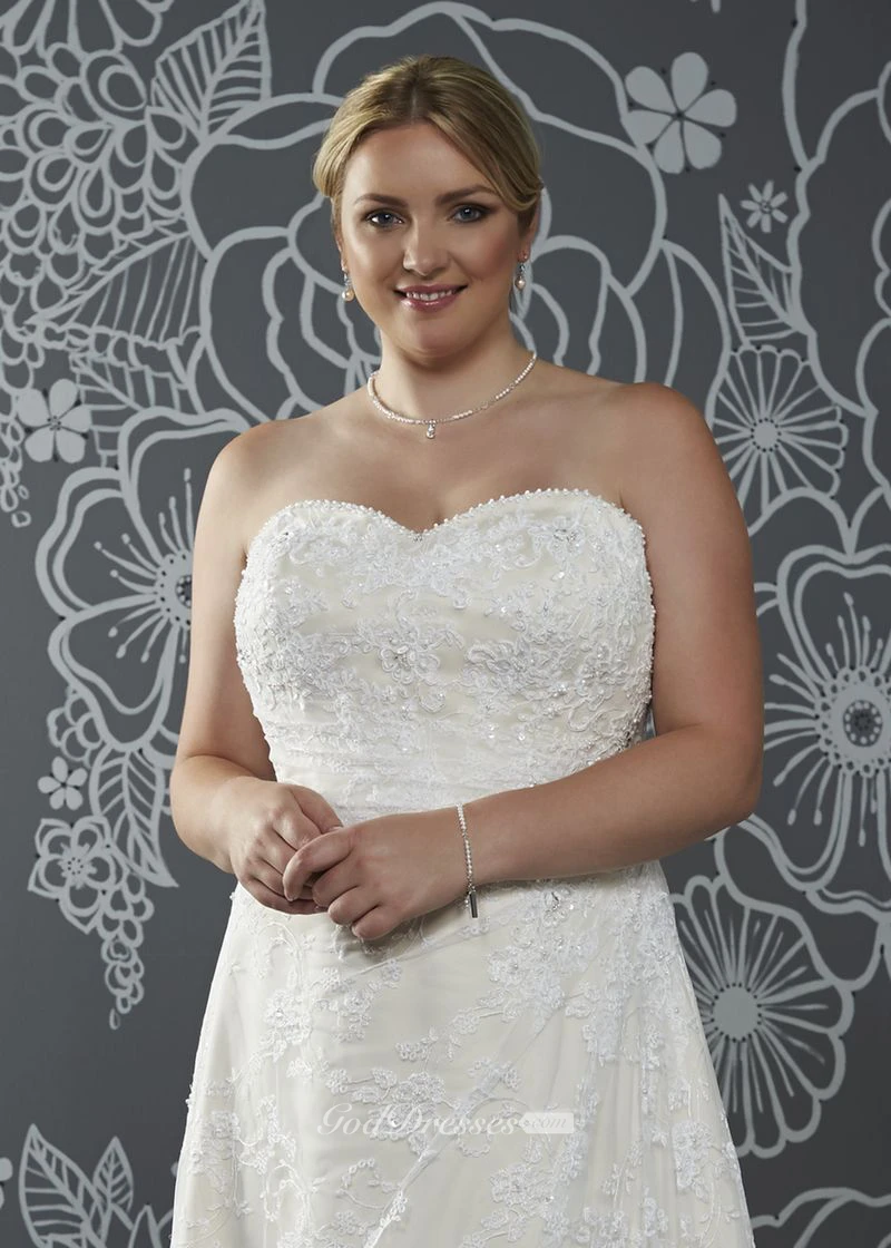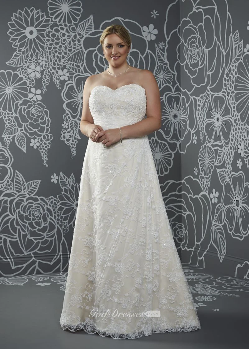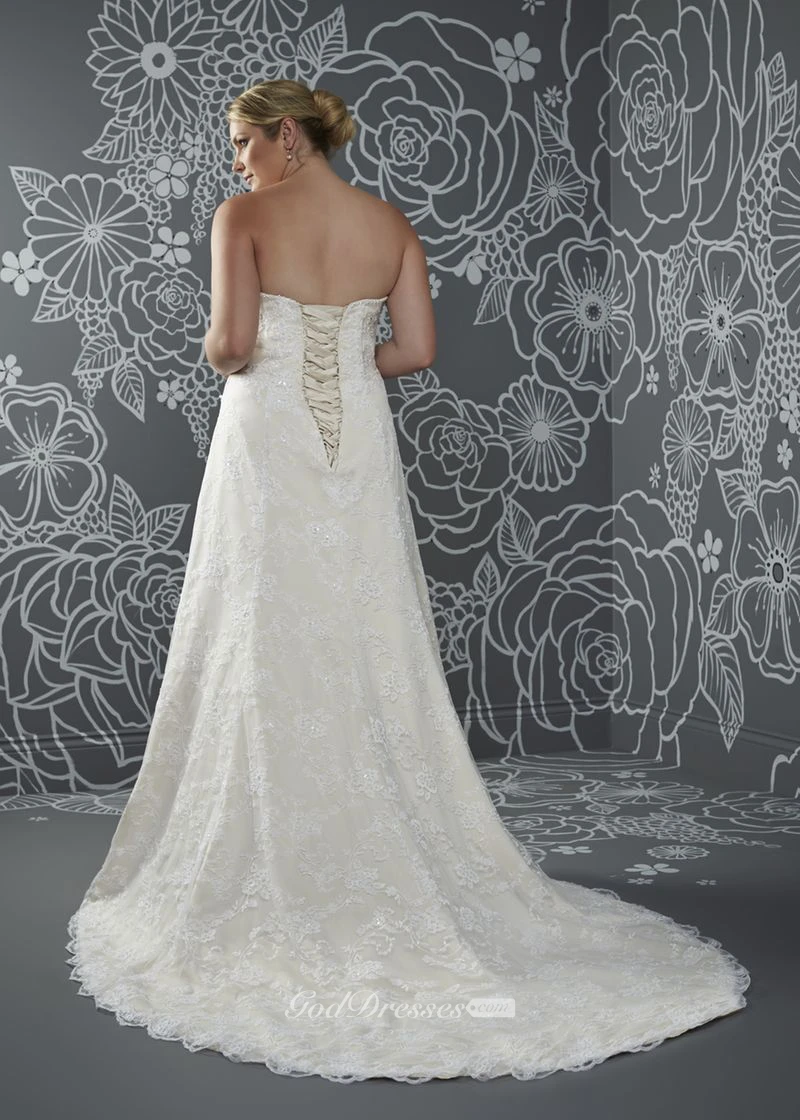 A-Line Floor-Length Sweetheart Sleeveless Lace Court Train Lace-Up Back Appliques Dress