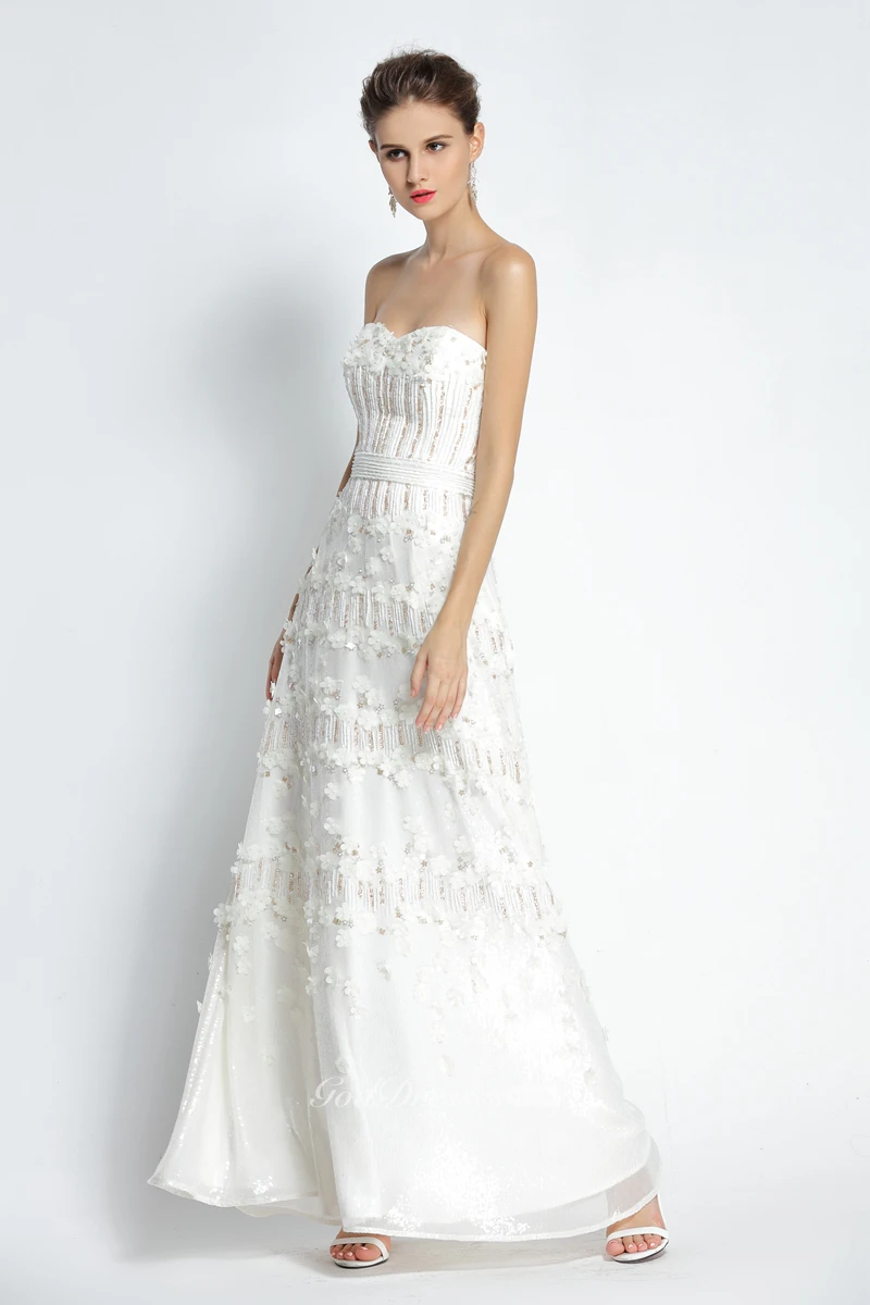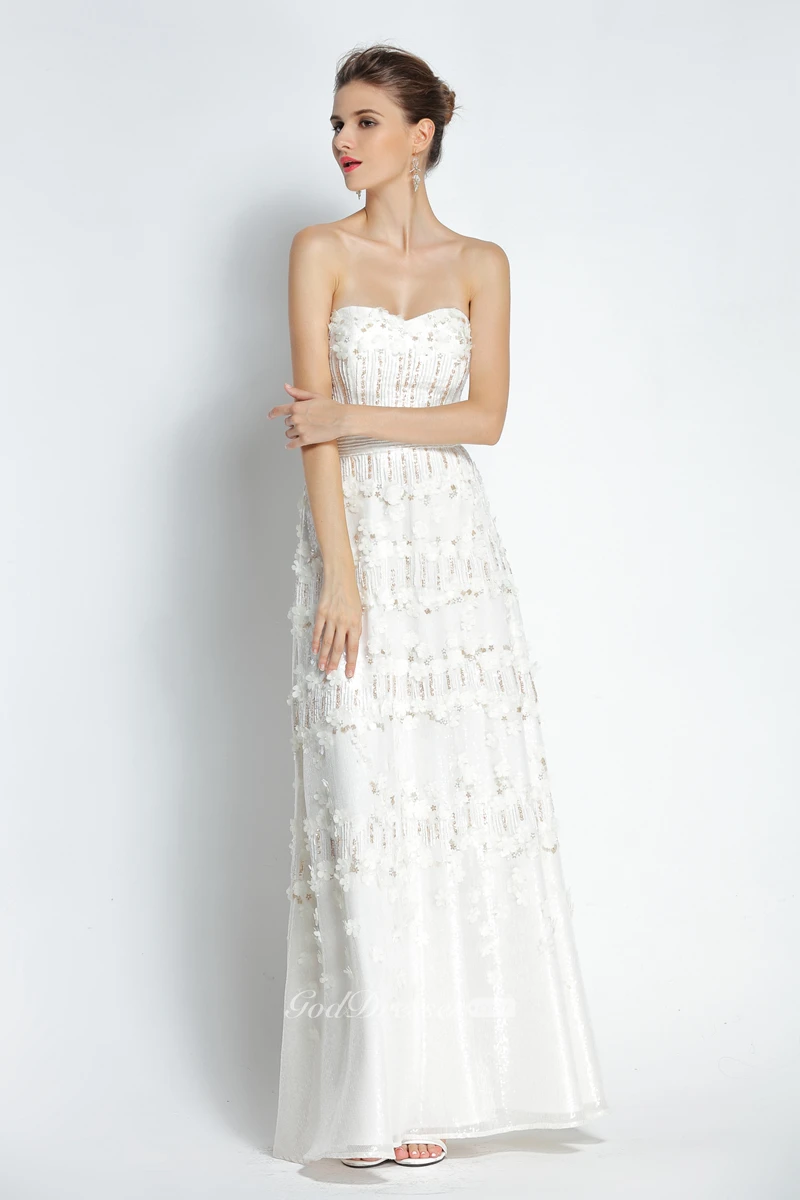 A-Line Floor-length Sweetheart Sleeveless Prom Dress with Appliques and Flowers