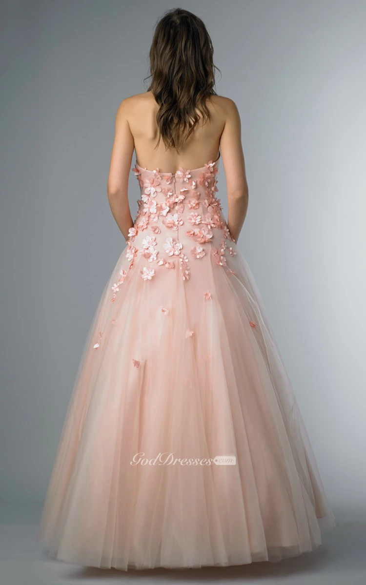 A-line Floor-length Sweetheart Sleeveless Tulle Backless Dress