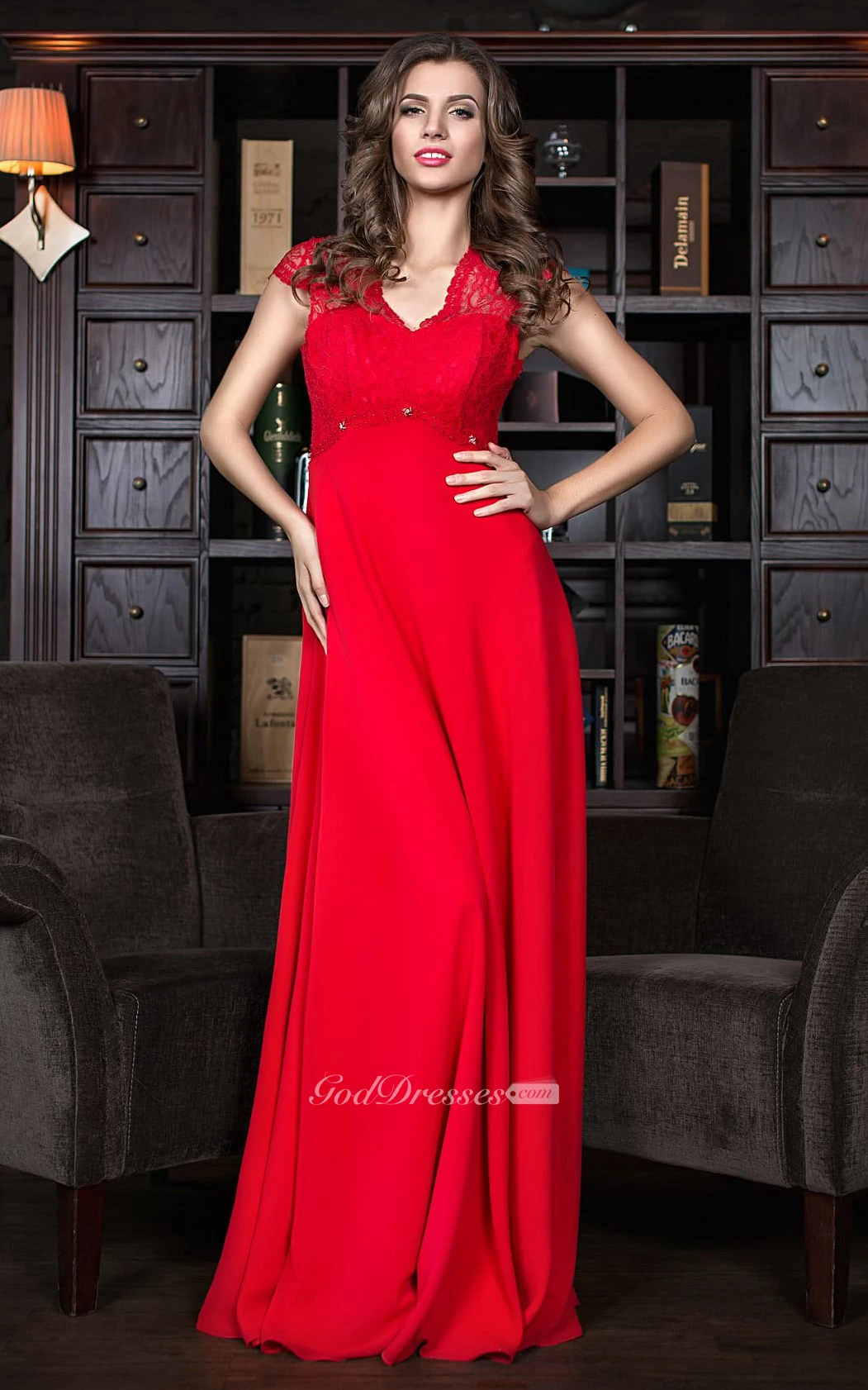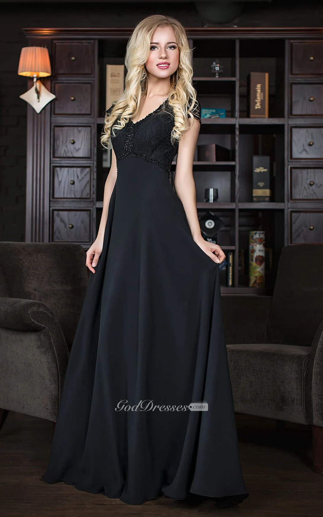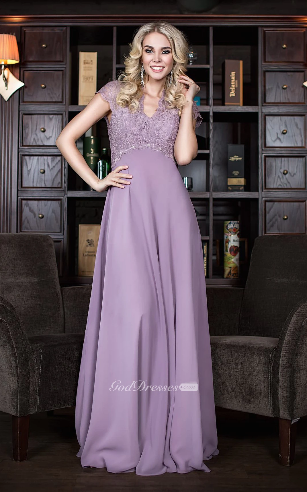 a-line Floor-length V-neck Short Sleeve Chiffon Zipper Dress