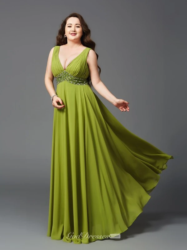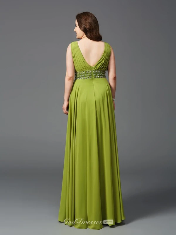 A-line Floor-length V-neck Sleeveless Chiffon Waist Jewellery Pleats Low-V Back Dress