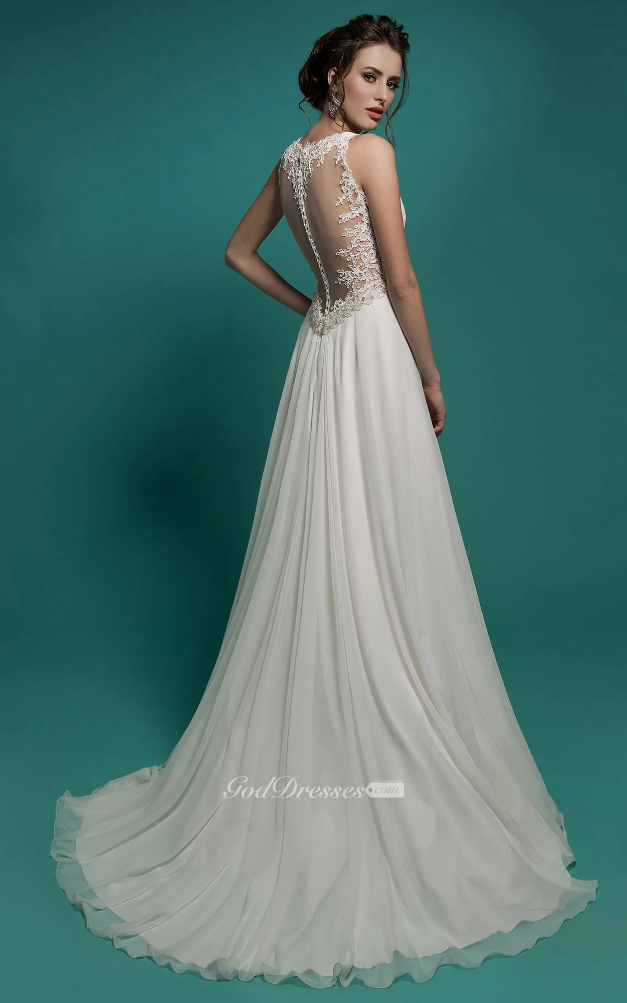 The dress is gorgeous! The dress chiffon materials are great, and the lace details. I'm so happy with my wedding dress, it's exactly what I'm looking for.