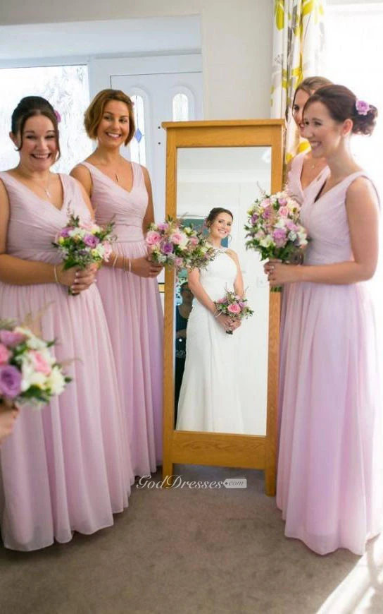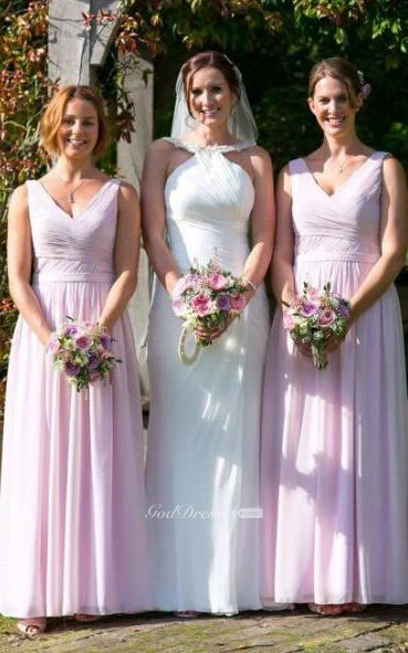 A-line Floor-length V-neck Sleeveless Zipper Chiffon Dress