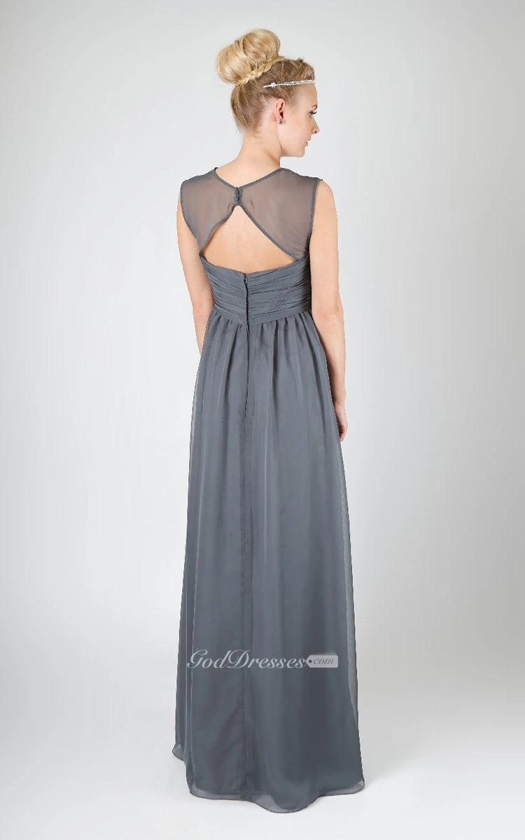 A-Line Gown With Has Illusion Cap-Sleeves And Back Keyhole
