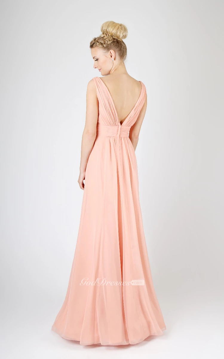 A-Line Graceful Long Dress With Deep-V Back