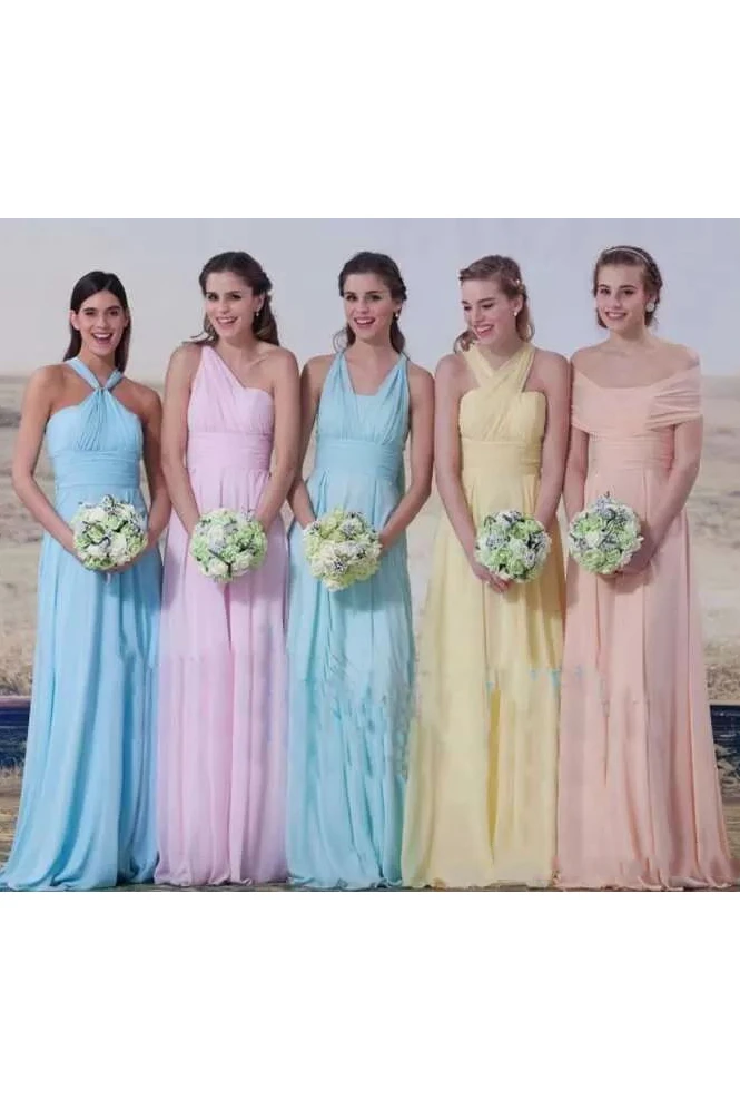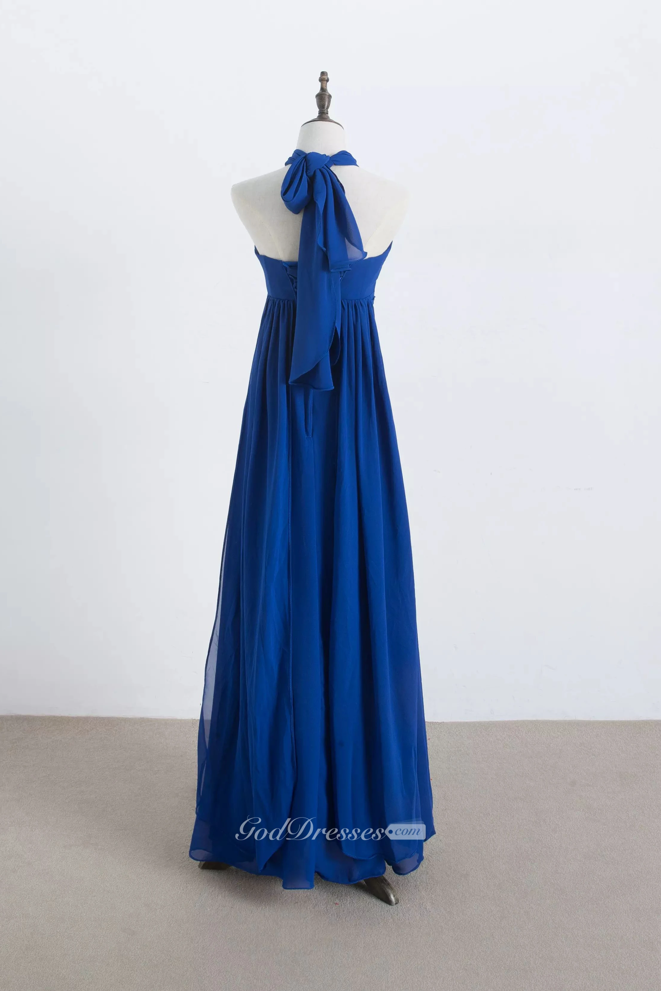 A-line Halter Sleeveless Floor-length Chiffon Bridesmaid Dress with Pleats