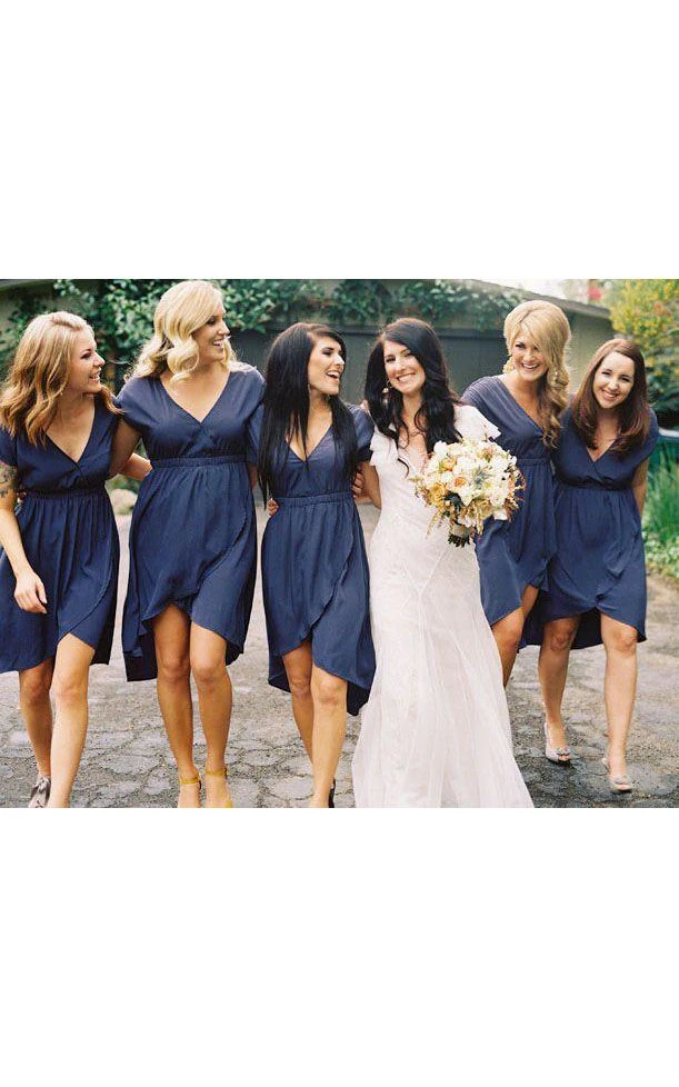 A-line High-low V-neck Cap-sleeved Pleats Chiffon Dress