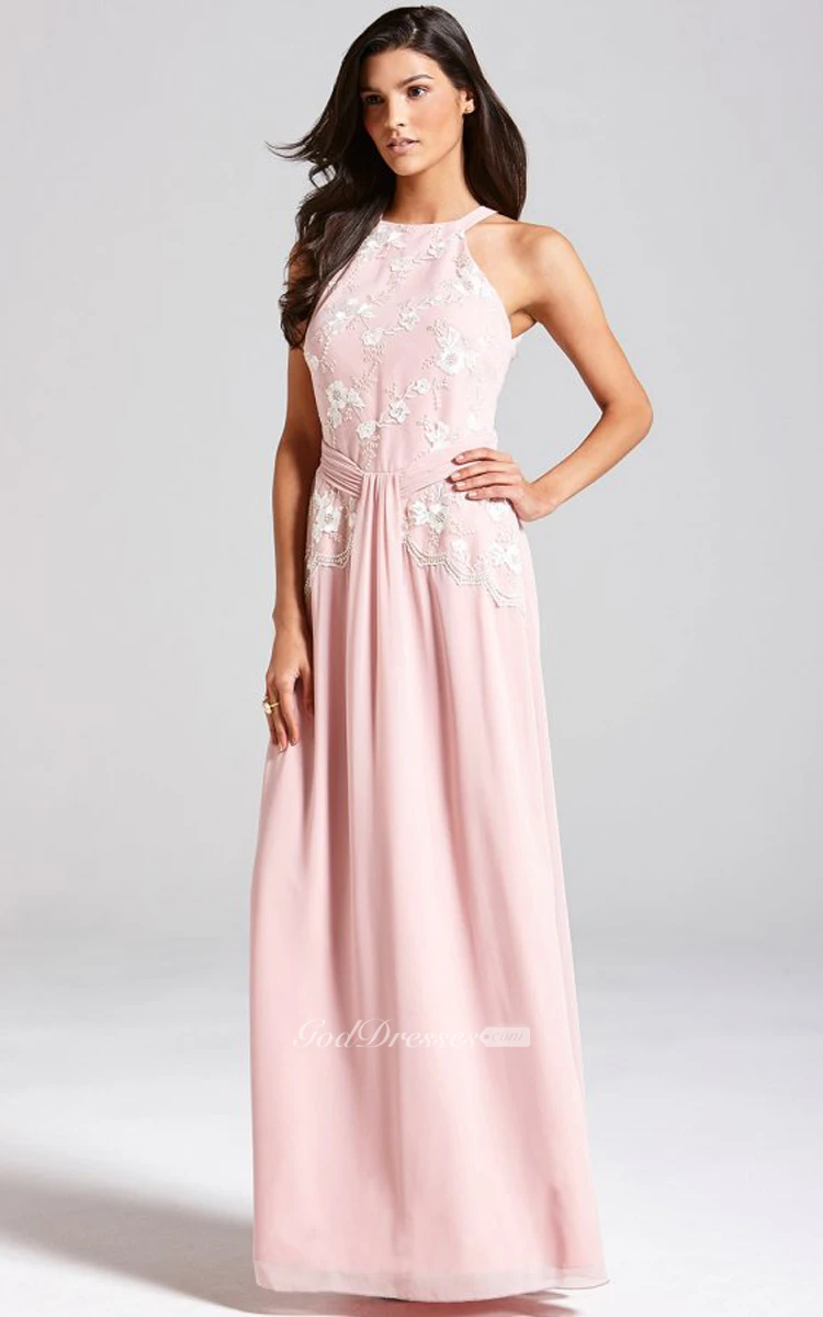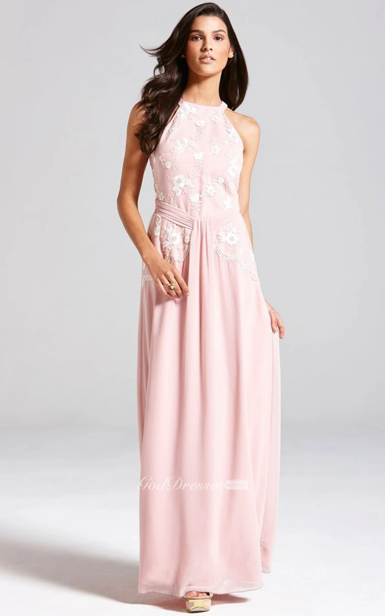 A-Line High-Neck Dress With Lace Detail And Back Keyhole