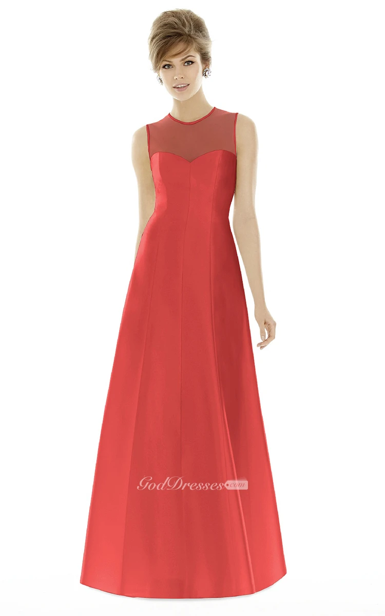 A-Line High-Neck Sleeveless Illusion Ruched Satin Gown