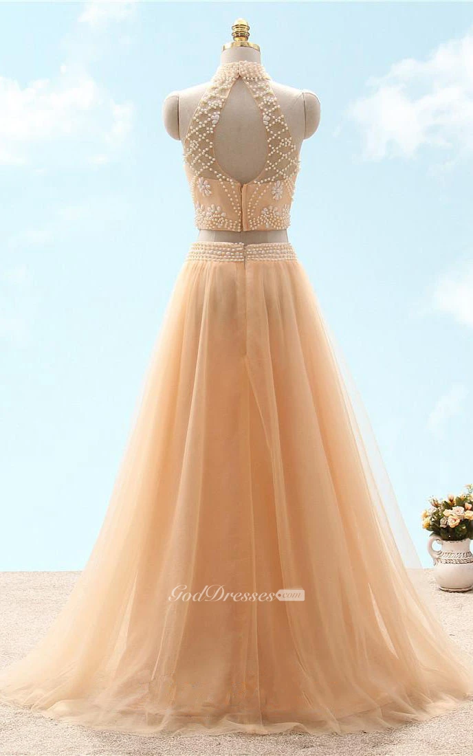 A-line High Neck Sleeveless Tulle Beading Lace Dress