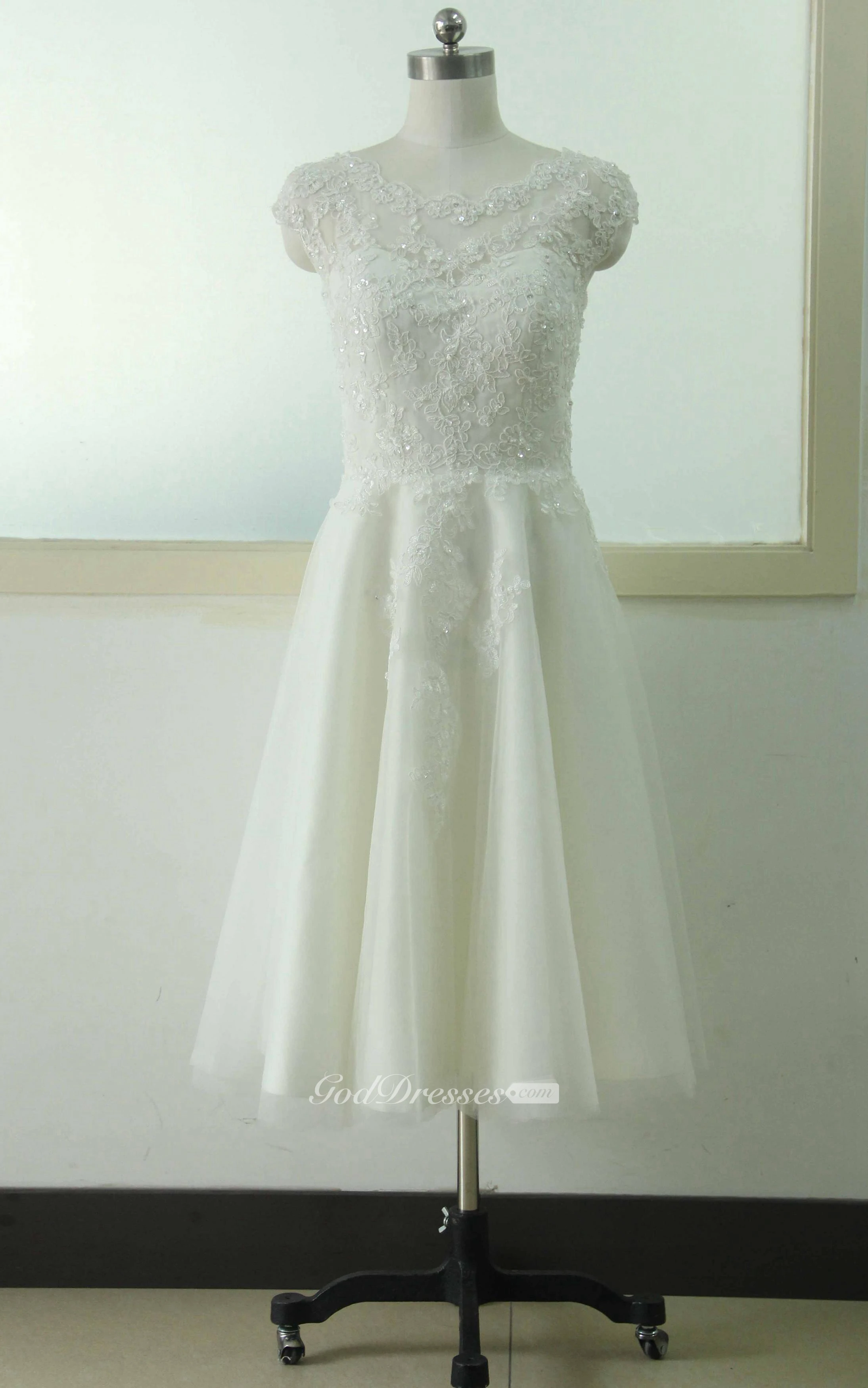 A-Line Knee-Length Cap Beading Flower Zipper Corset Back Chiffon Tulle Lace Sequins Satin Dress