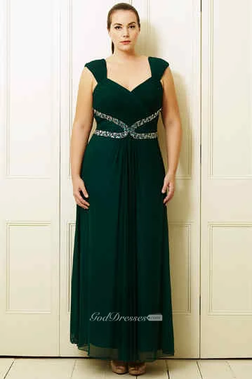 A-Line Knee-Length Sleeveless Beaded Queen-Anne Chiffon Plus Size Prom Dress With Ruching