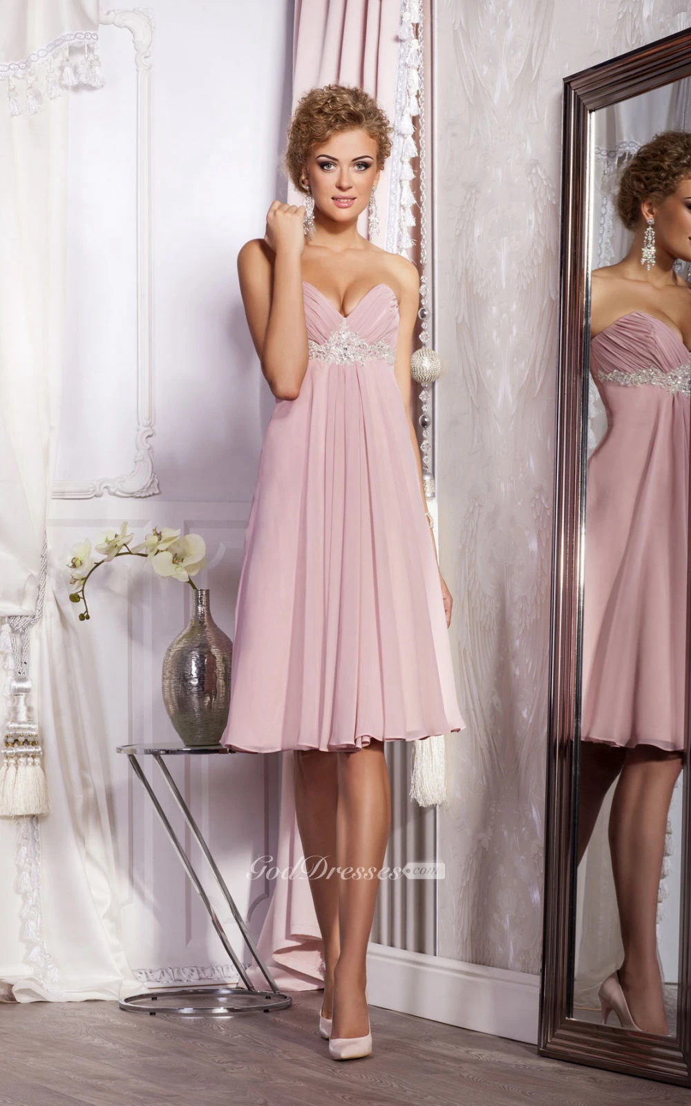 A-Line Knee-Length Sweetheart Sleeveless Empire Chiffon Pleats Beading Zipper Dress