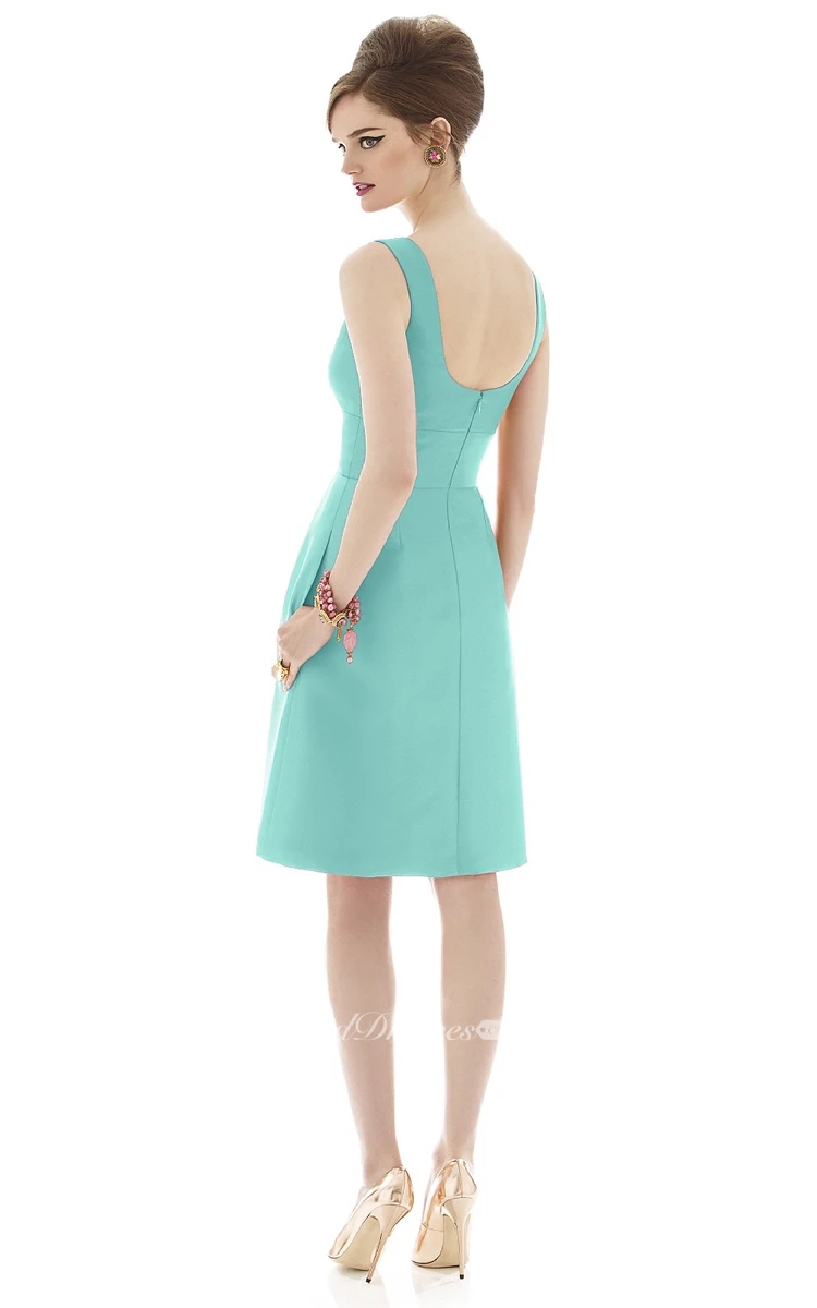 A-Line Knee-Length V-Neck Satin Gown with Pockets Straps-Back