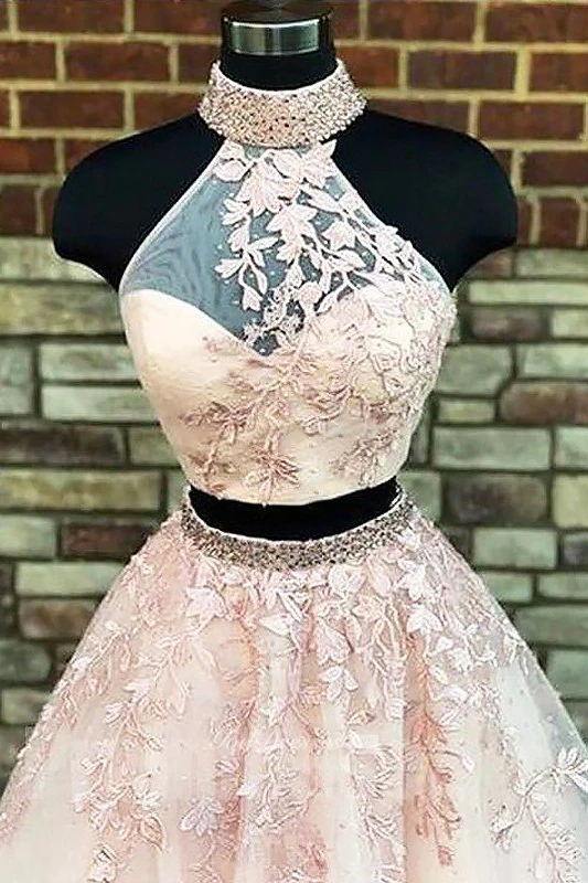 A-Line Lace Tulle High Neck Sleeveless Keyhole Dress