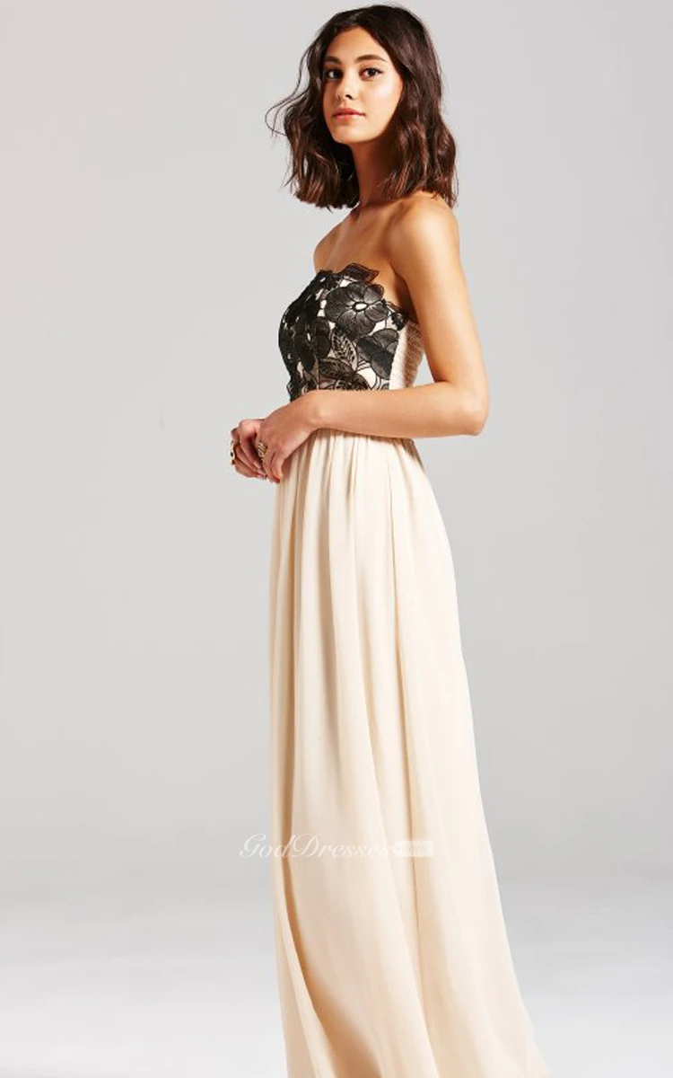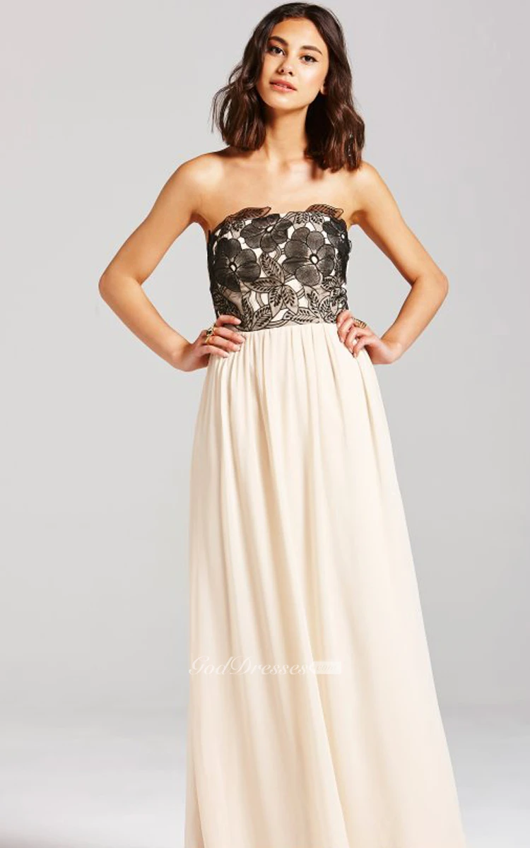 A-Line Long Dress With Black Embroidery Bodice