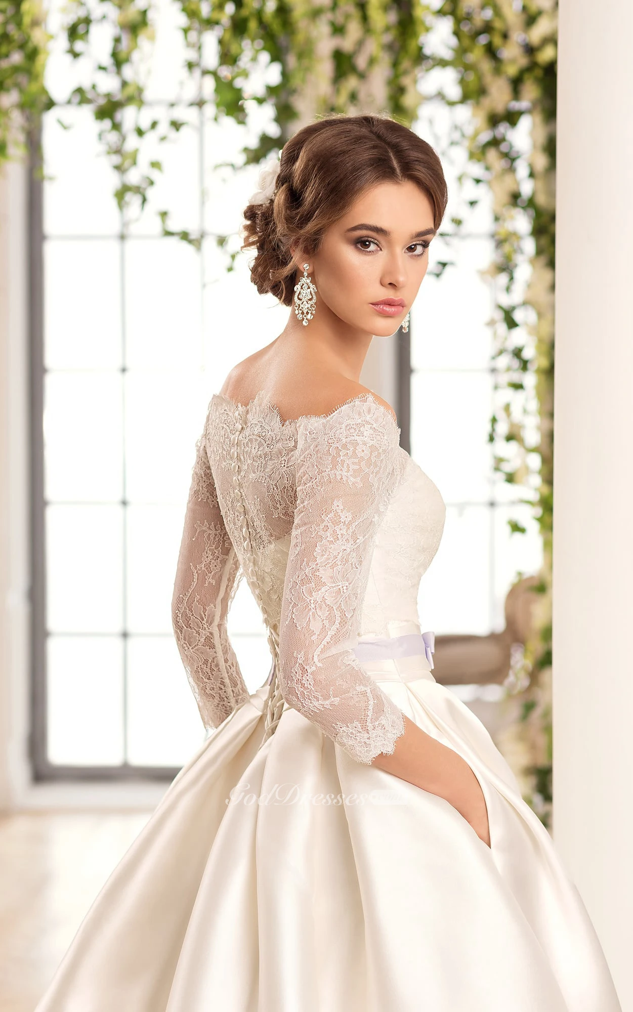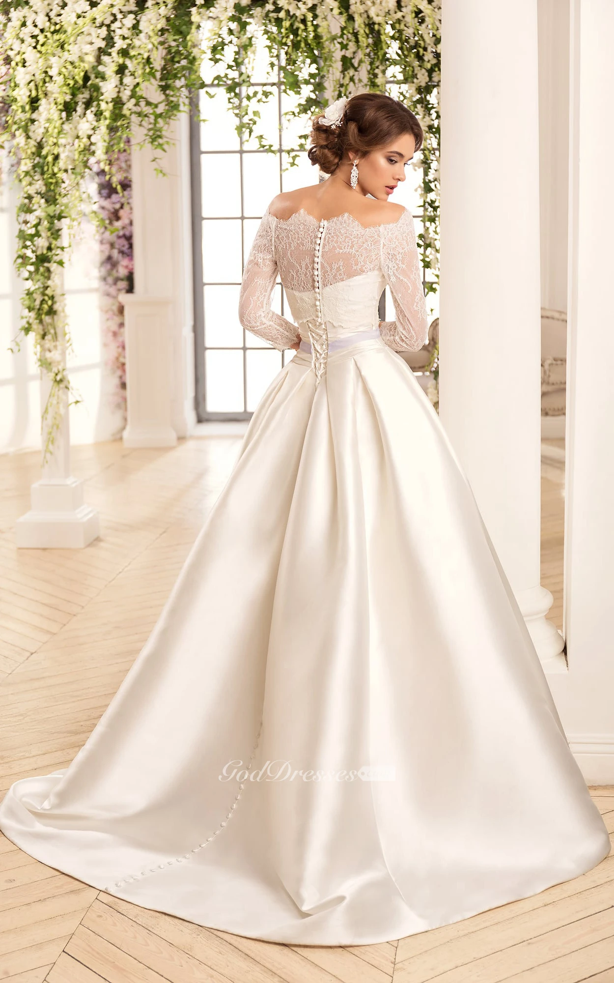 A-Line Long Off-The-Shoulder Sleeveless Illusion Satin Dress With Cape
