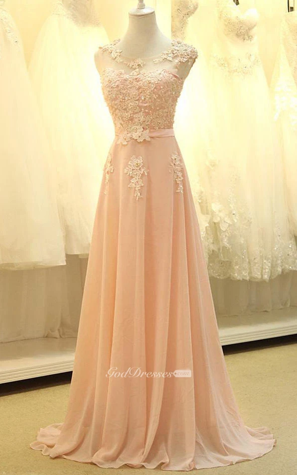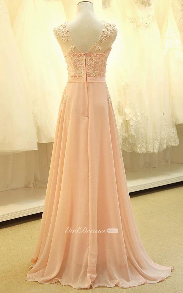A-line Long Sleeveless Chiffon Dress with Lace Appliques