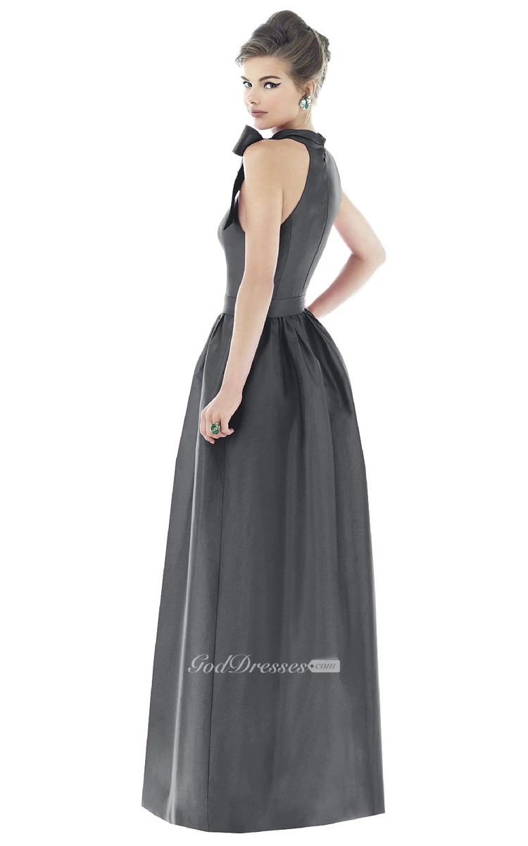 A-Line Long Sleeveless High-Neck Dress With Wit Zipper Back