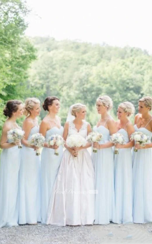 A-line Long Spaghetti Sleeveless Bell Zipper Straps Chiffon Dress