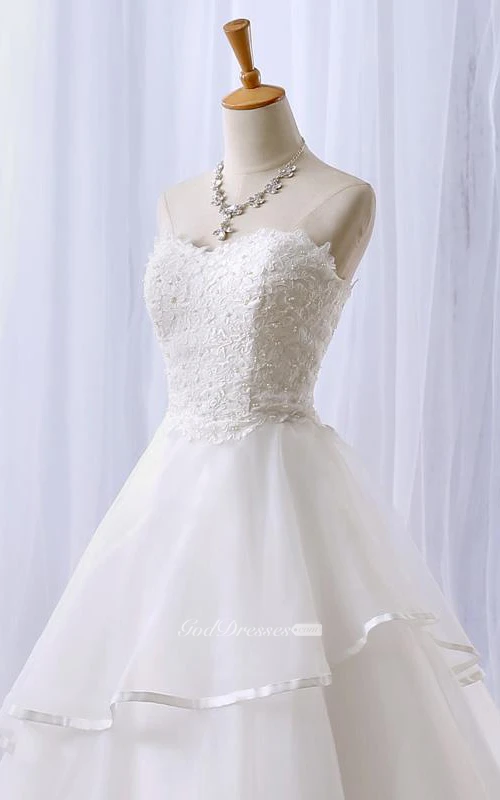 A-Line Long Sweetheart Appliques Chapel Train Zipper Lace-Up Back Tulle Lace Dress