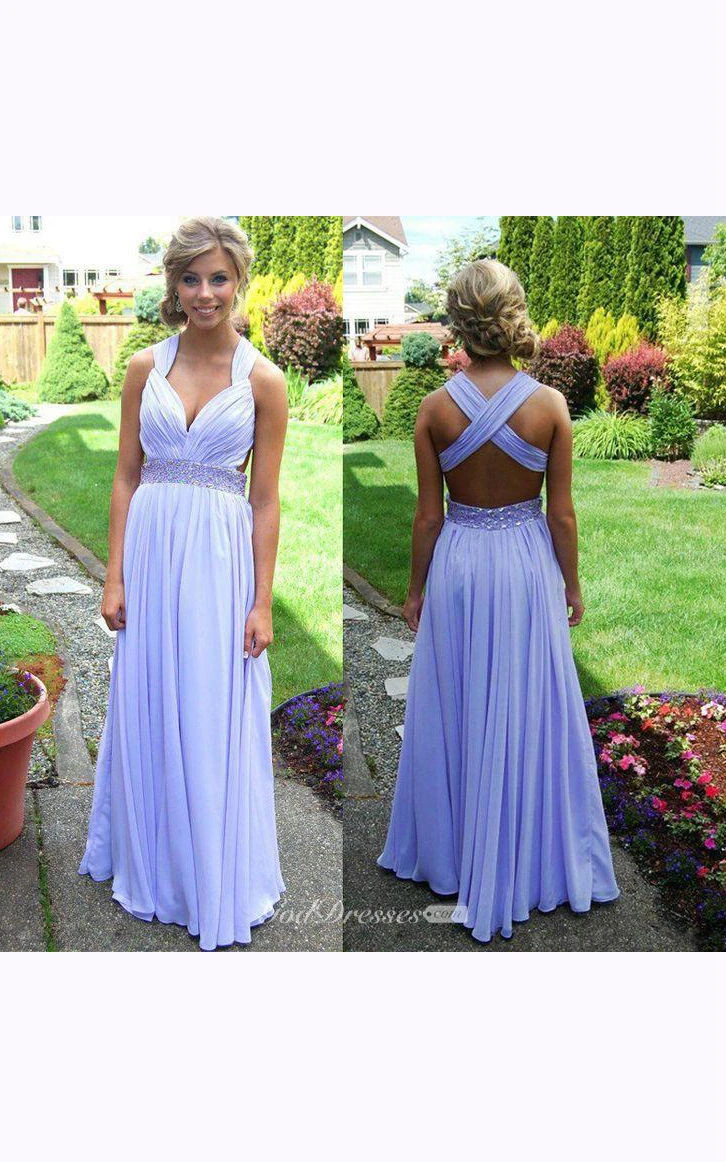 A-line Long Sweetheart Backless Keyhole Chiffon Dress