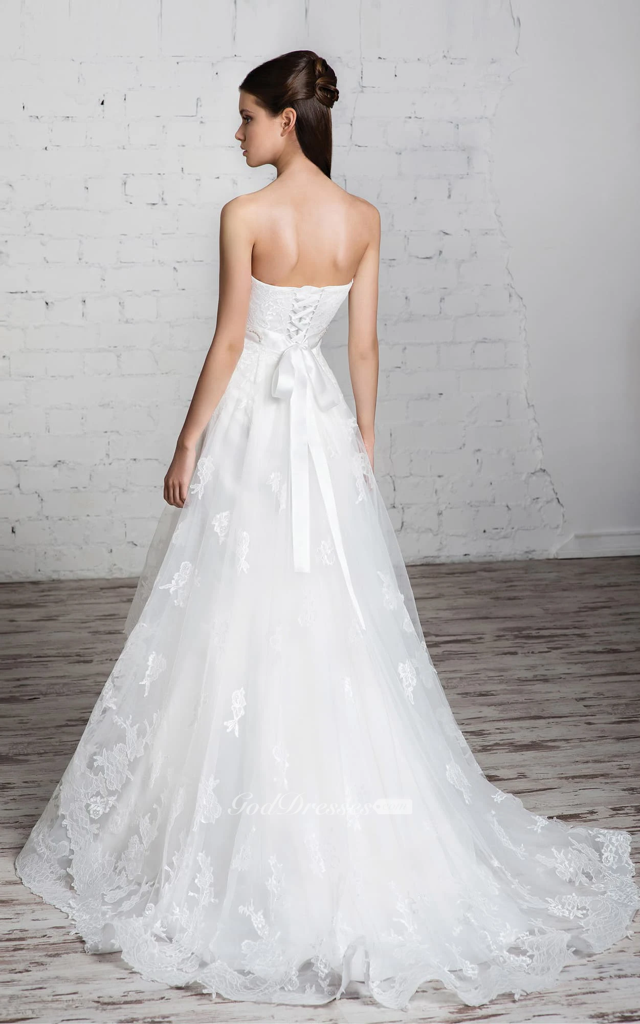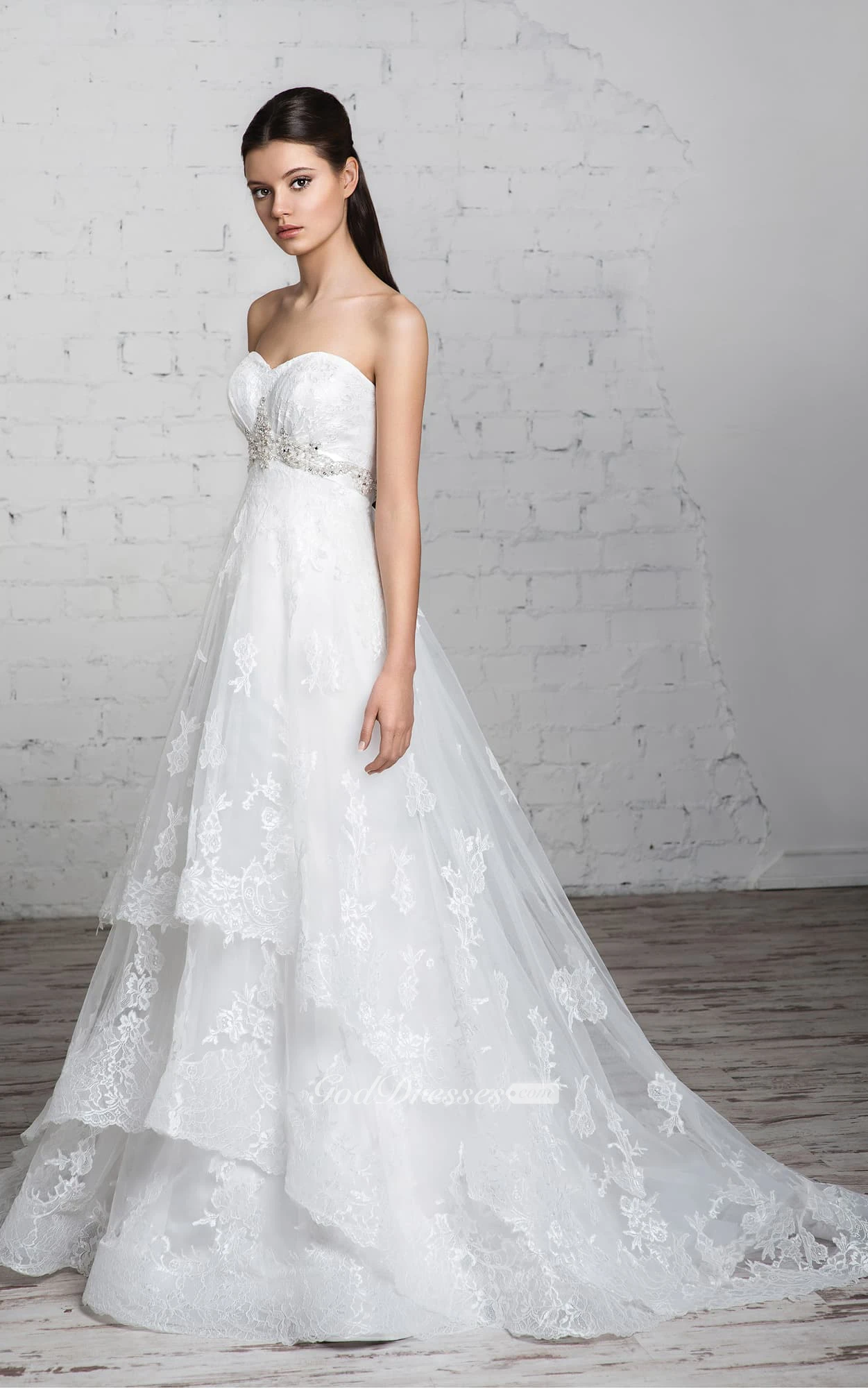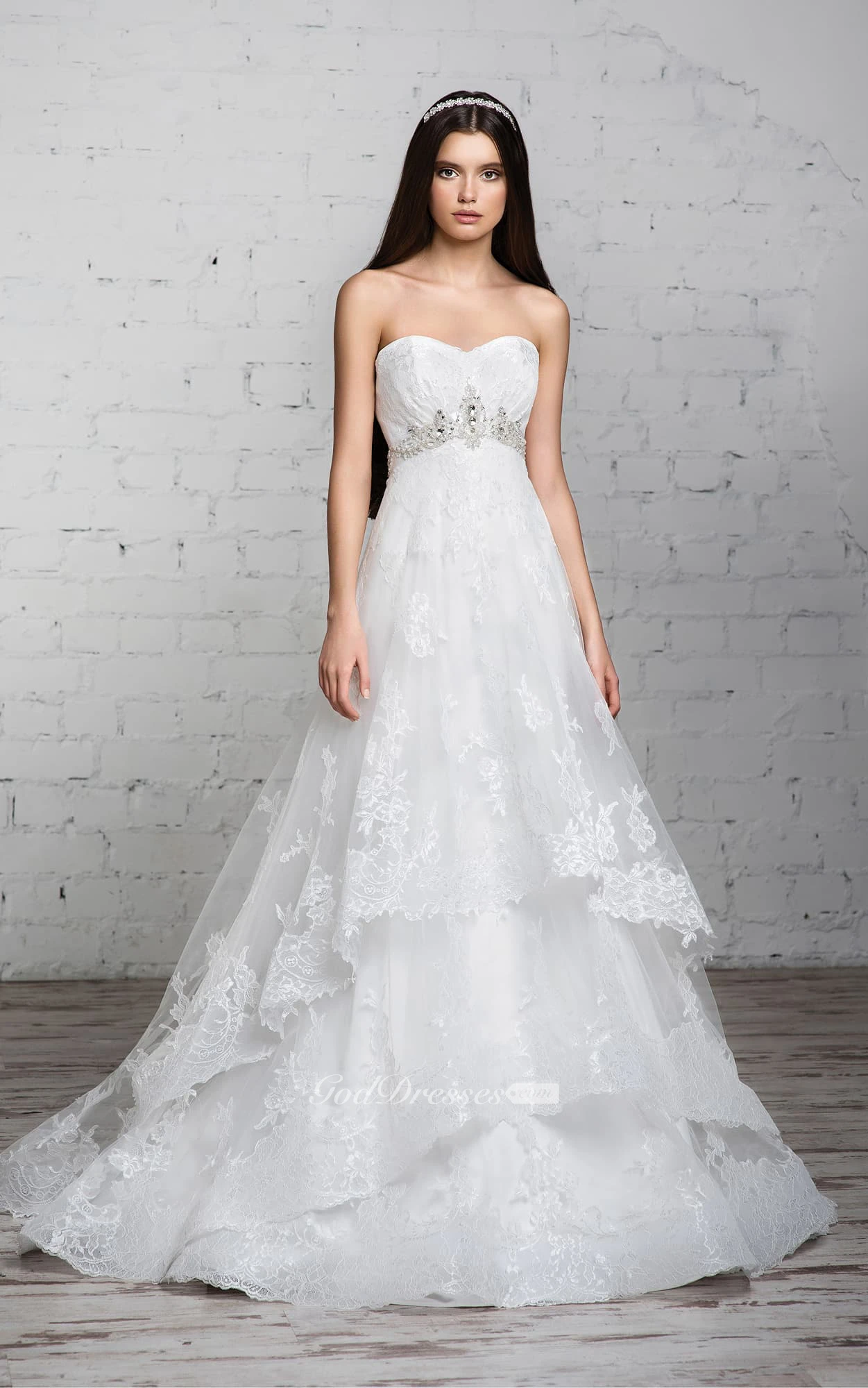 A-Line Long Sweetheart Sleeveless Empire Corset-Back Lace Dress With Tiers And Beading