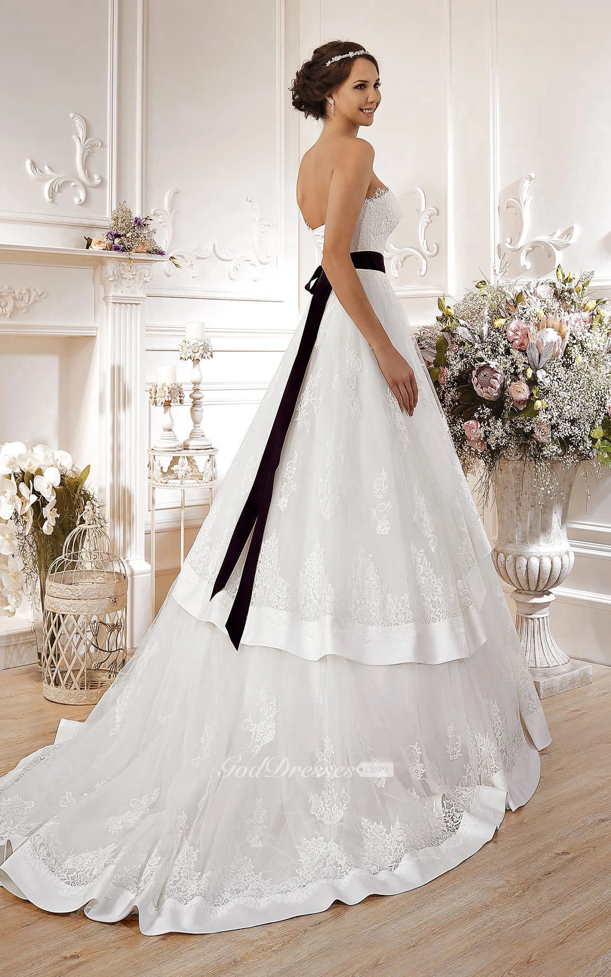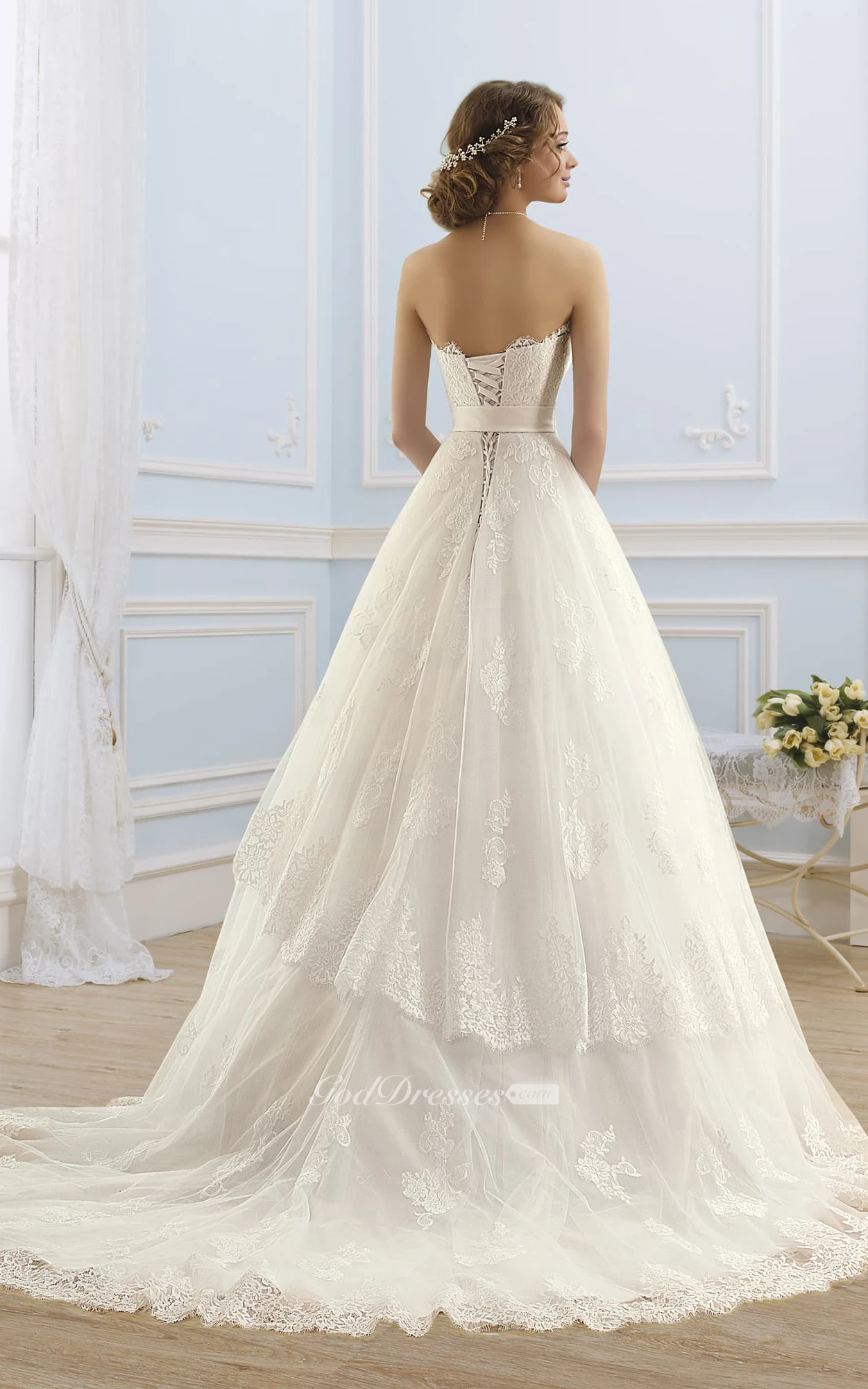 A-Line Long Sweetheart Sleeveless Lace-Up Lace Dress With Appliques And Bow